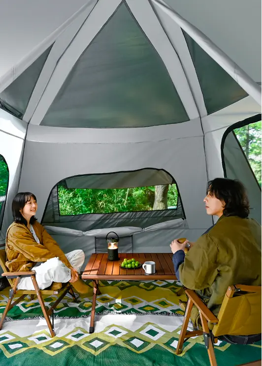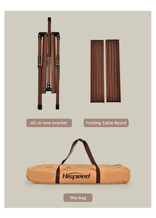 Столешница легко отсоединяется и скручивается в рулон, а ножки на кронштейнах мгновенно складываются одним движением. Полностью разборная система обеспечивает компактность – идеально для походов и пикников. Чехол для транспортировки и переноски в комплекте.