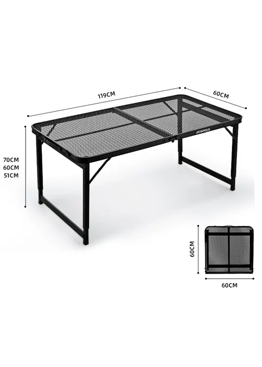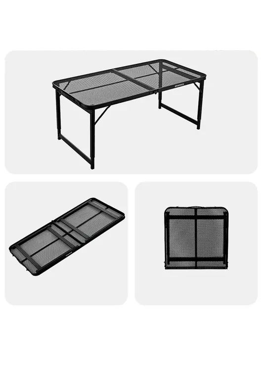 Черный цвет придает столу современный и универсальный вид, что делает его подходящим для любого окружения. Удлиненная столешница и регулируемая высота позволяют использовать стол для различных задач - от приема пищи до работы с инструментами. Компактность в сложенном виде и продуманная конструкция обеспечивают удобство транспортировки.