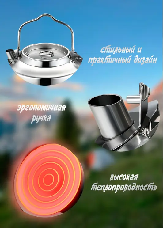 Чайник отлично подходит для использования в походах, на пикниках, даче или в повседневной жизни. Его компактный размер и удобная ручка делают его практичным для транспортировки и использования в любых условиях. Высокая теплопроводность нержавеющей стали обеспечивает быстрый нагрев воды, что особенно важно в условиях активного отдыха.