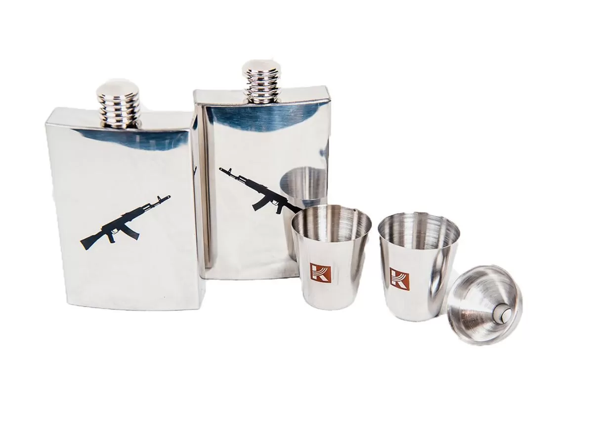 - Две фляжки из нержавеющей стали объемом 100 мл каждая
