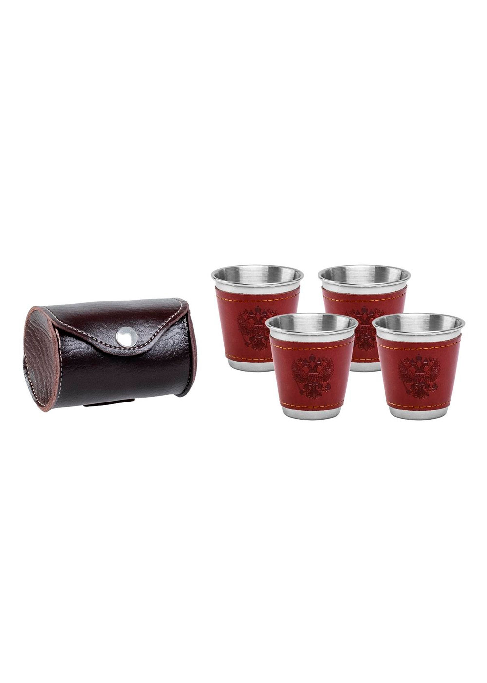 Набор состоит из четырех стопок объемом 60 мл каждая. Стопки выполнены из стекла и украшены изображением герба на кожаном фоне. Высота стопки - 6,5 см, диаметр - 4,8 см. Стопки подходят для подачи крепких напитков.