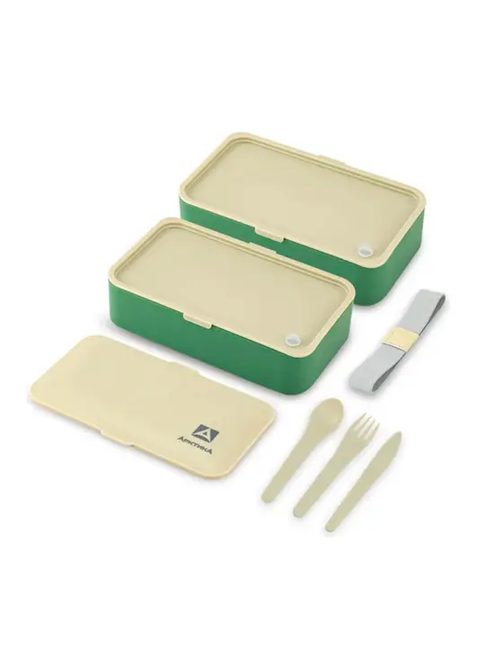 Двухуровневый ланч-бокс тм "Арктика" объёмом 1,2 л. с приборами в комплекте артикул 032-1200-GN/BG. Два отделения по 600 мл. с кейсом для ложки, вилки и ножа позволят не смешивать содержимое и его запах, брать с собой горячие блюда и, например, салат. Их можно использовать и отдельно. При необходимости ланч-бокс можно разогревать в микроволновой печи и мыть в посудомоечной машине (без крышки). Ланч-бокс изготовлен из проверенных пищевых материалов, полностью безопасных для здоровья и не выделяющих вредные бисфенолы (BPA free).