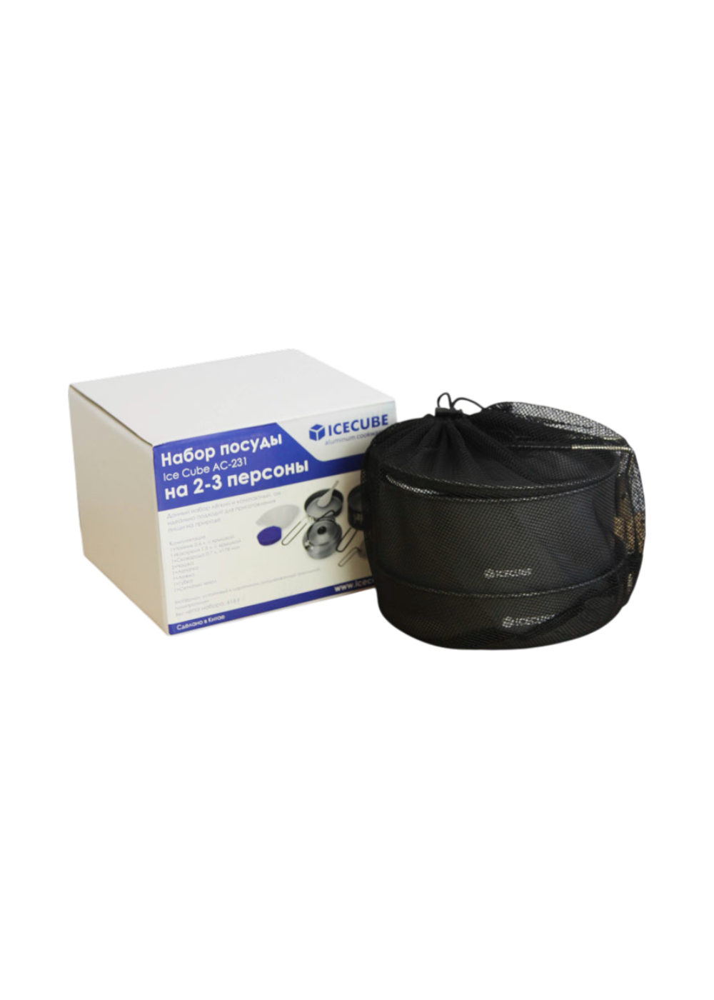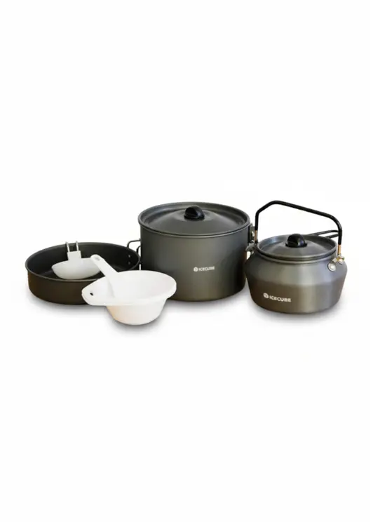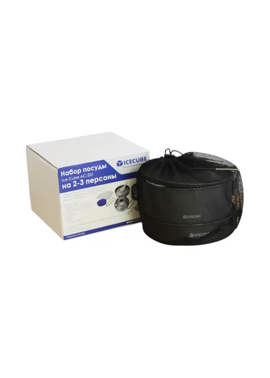ICE CUBE АС-231 - лёгкий и компактный походный набор посуды на 2-3 персоны из анодированного алюминия, который идеально подходит для приготовления пищи на природе. Кастрюли, сковорода и чайник изготовлены из высококачественного анодированного алюминия. Комплект компактно складывается в сетчатый чехол. Еда не пригорает при готовке, посуда легко моется. Одной из важных особенностей является длинная откидная ручка. Она достаточно длинная, чтобы не обжечься и в процессе приготовления и не нагревается.