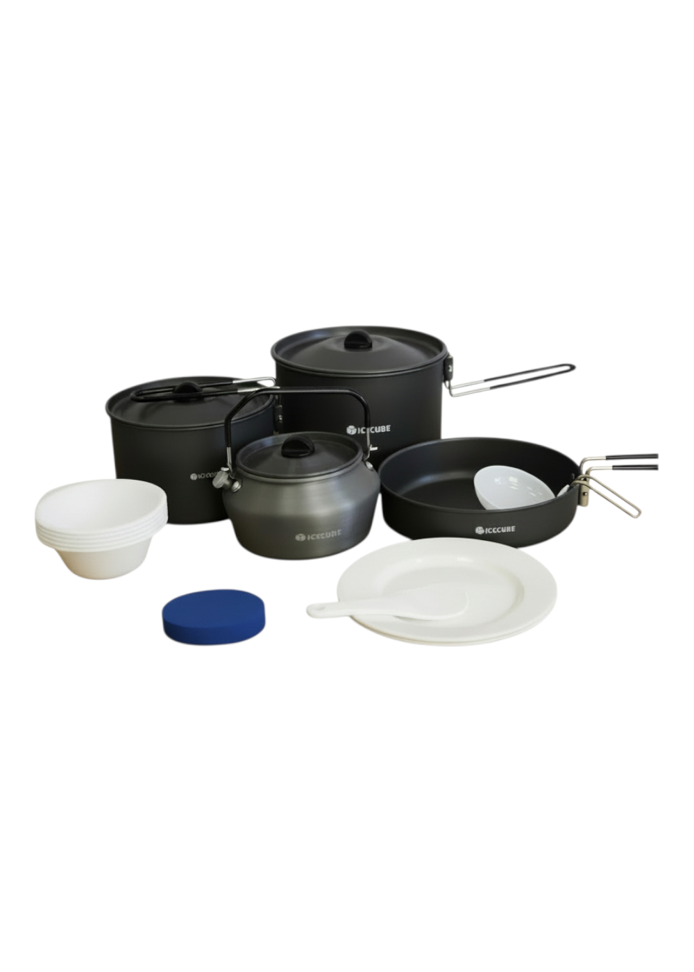 Этот лёгкий и компактный походный набор AC-233 от ICE CUBE идеально подходит для приготовления пищи на природе. Рассчитан на компанию из 4-5 человек. Кастрюли, сковорода и чайник изготовлены из высококачественного анодированного алюминия. Комплект компактно складывается в сетчатый чехол. Еда не пригорает при готовке, посуда легко моется. Одной из важных особенностей является длинная откидная ручка. Она достаточно длинная, чтобы не обжечься и в процессе приготовления и не нагревается.