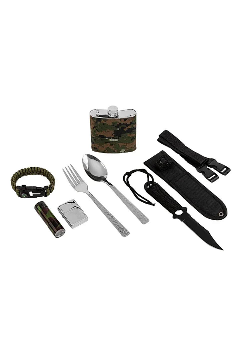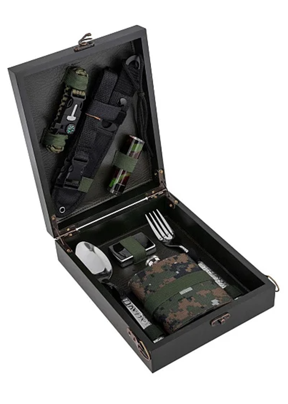 Набор-чемодан Helios HS-2023-MH-3 — это многофункциональный комплект, который станет незаменимым помощником в различных ситуациях. В набор входят фляжка объёмом 210 мл, ложка, вилка, зажигалка, браслет-компас, нож и фонарик. Все предметы компактно размещены в удобном чемодане, что обеспечивает их сохранность и лёгкость транспортировки.