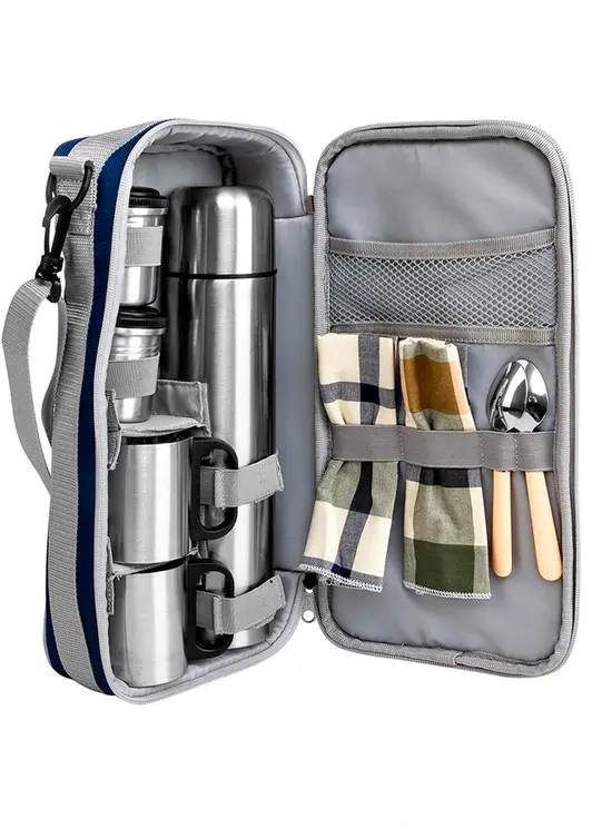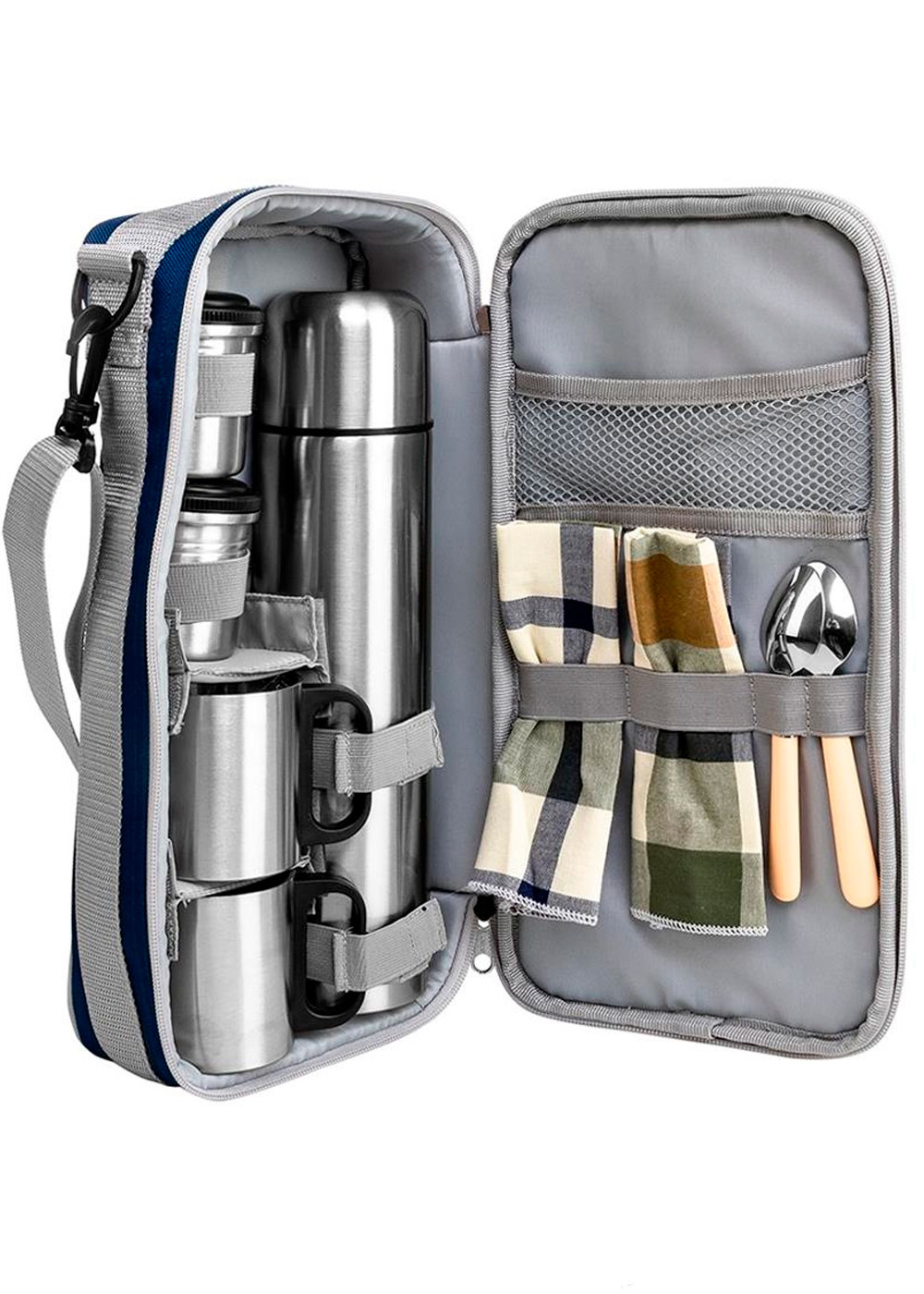 Набор для пикника NISUS на две персоны включает в себя все необходимые предметы для комфортного пикника. В состав набора входят: две тарелки, две чашки, два стакана, две вилки, две ложки, два ножа, штопор, солонка, перечница и салфетница. Набор компактно упакован в удобный рюкзак, который можно взять с собой на природу или в путешествие.