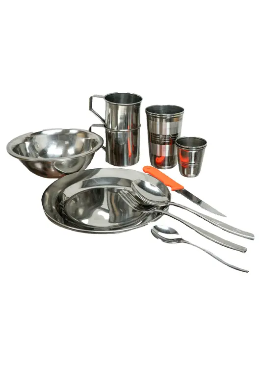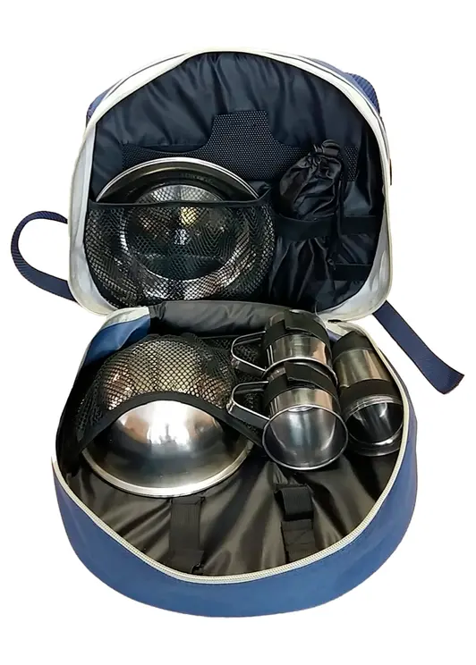 Изделия выполнены из нержавеющей стали, благодаря чему имеют незначительный вес, легко моются, не впитывают посторонние запахи и долговечны. Все предметы компактно располагают в нижнем отсеке рюкзака, который открывается с помощью молнии. Таким образом, у вас будет пустое основное отделение для переноски других необходимых для вылазки предметов.