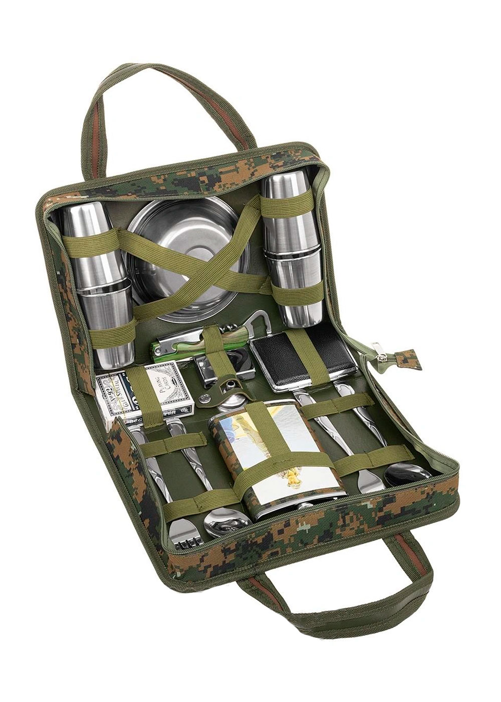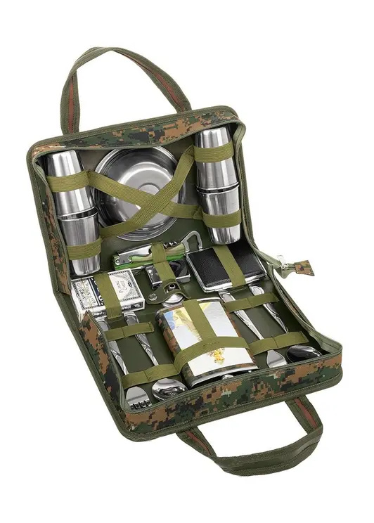 Набор посуды в сумке-чехле микс (HS-DFB-9B-F) Helios - удобный и компактный набор станет незаменимым атрибутом в похода, отдыхе на открытом воздухе и отличным подарком на памятную дату. Все необходимое для приятного отдыха собрано в компактной прочной сумке-чехле, которая облегчает процесс транспортировки и хранения.