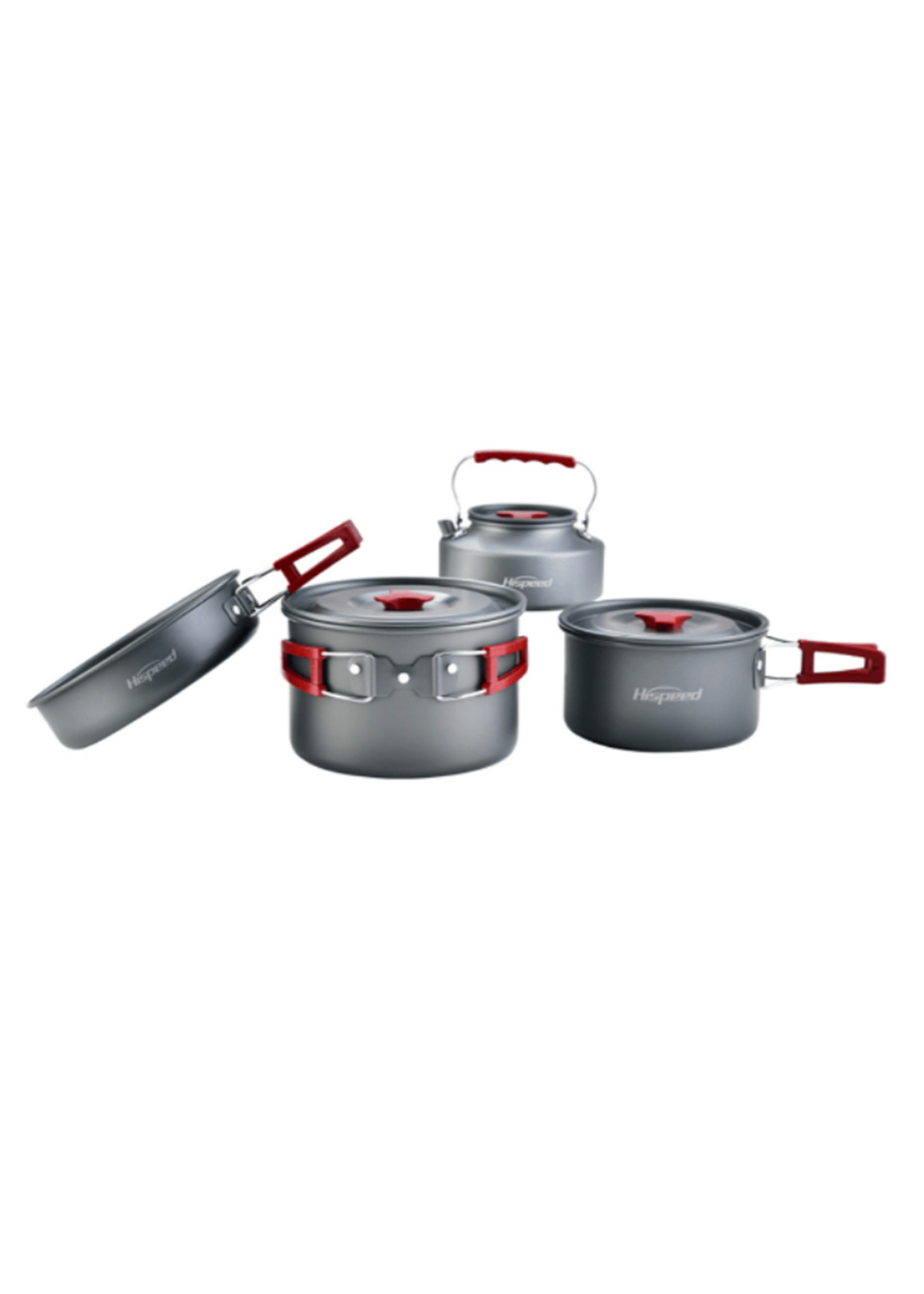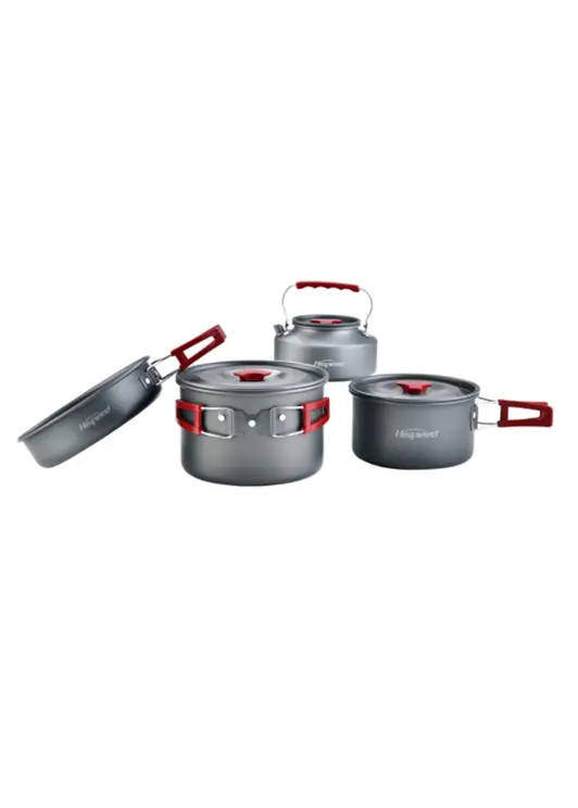 Набор туристической посуды Hispeed — это идеальный спутник для любителей активного отдыха, походов и пикников. В набор входят все необходимые элементы для приготовления пищи на природе: чайник, сковорода и две кастрюли. Компактный, легкий и функциональный, этот набор станет вашим незаменимым помощником в любом путешествии.Посуда подходит для приготовления пищи на костре или газовой горелке.