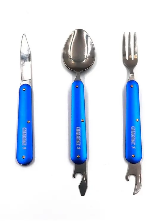 Набор складных столовых приборов «Следопыт» — отличный выбор для тех, кто любит активный отдых на природе. В комплект входят три предмета: ложка, вилка и нож. Они выполнены из нержавеющей стали, поэтому прослужат вам долгое время. Столовые приборы удобно размещаются в специальном чехле, который защищает их от повреждений и облегчает транспортировку.