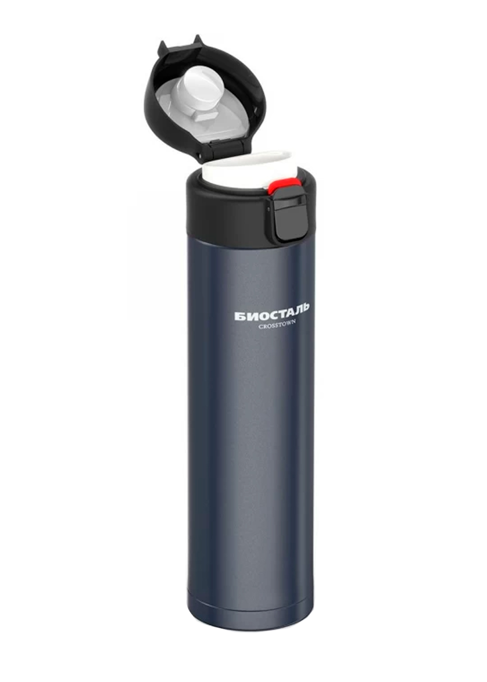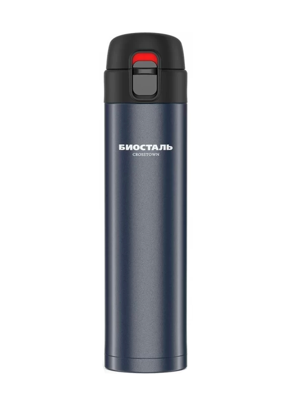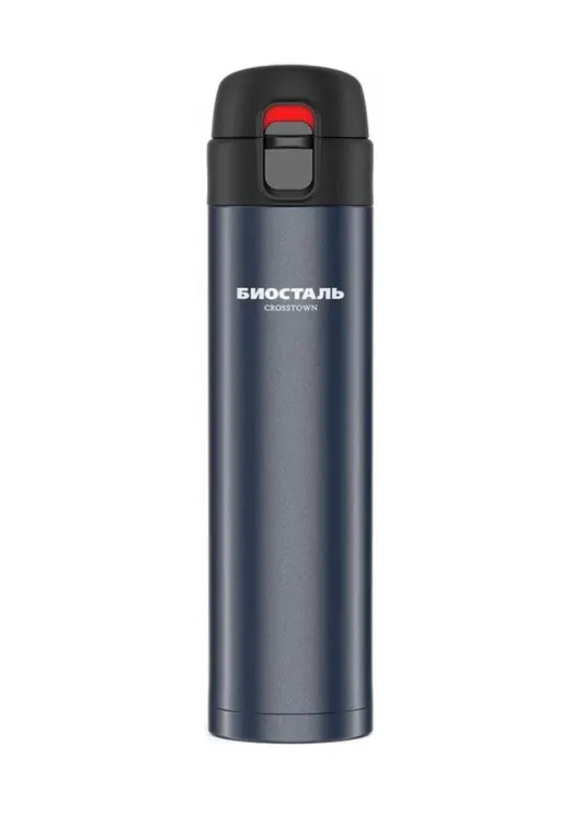 Стильная термос-кружка в глубоком синем исполнении из молодежной серии CROSSTOWN от российского бренда БИОСТАЛЬ. Современный городской дизайн с матовой синей отделкой, кнопка-предохранитель на крышке с мягким нажатием, двойная защита от случайного открывания, вакуумная изоляция с двухстенной конструкцией, эргономичная форма с удобным захватом, оптимизированные размеры для переноски в руке.