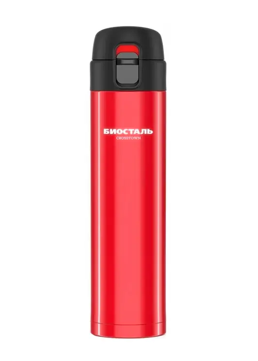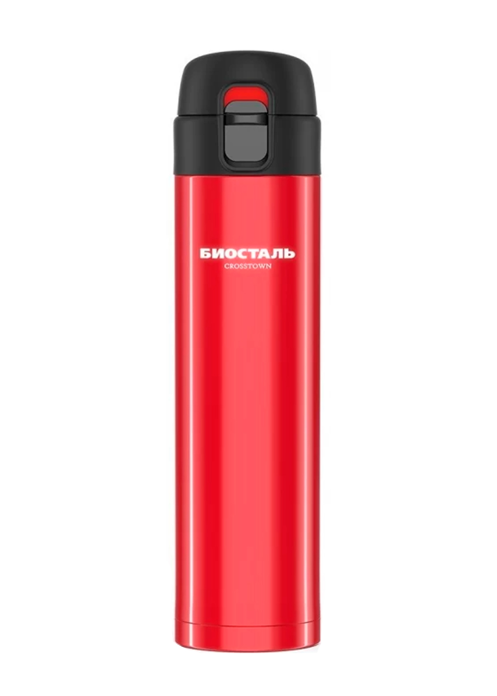 Яркая термос-кружка в насыщенном красном исполнении из молодежной серии CROSSTOWN от российского бренда БИОСТАЛЬ. Современный городской дизайн с матовой красной отделкой, кнопка-предохранитель на крышке с мягким нажатием, двойная защита от случайного открывания, вакуумная изоляция с двухстенной конструкцией, эргономичная форма с удобным захватом, оптимизированные размеры для переноски в руке.