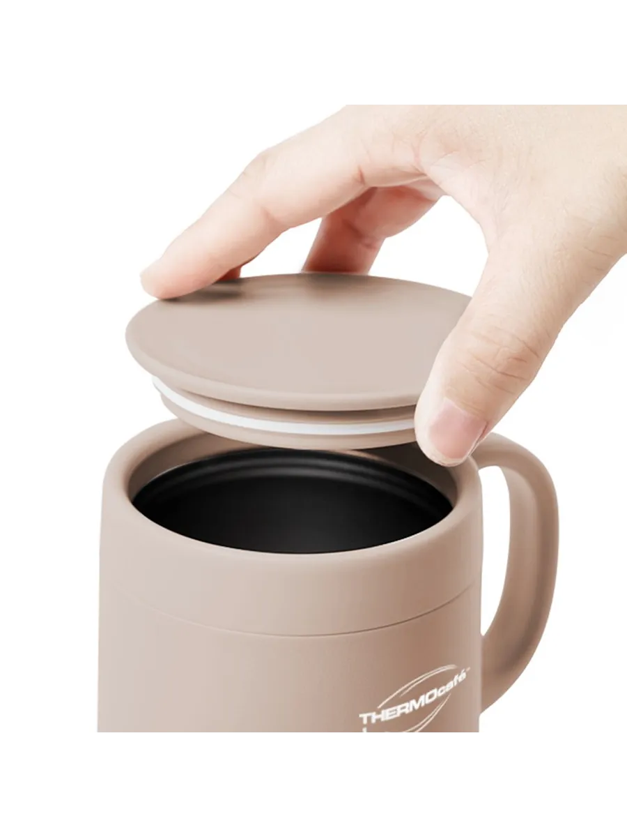 Термокружка THERMOcafe TCCM-460SY(LT) - это практичный и надежный аксессуар для тех, кто ценит комфорт и качество. Термокружка классической формы серии THERMOcafe предназначена для ежедневного использования и сохранит ваш напиток горячим или холодным намного дольше обычных чашек или стаканов. Длительный режим сохранения температуры жидкости обеспечивается за счет вакуумной изоляции, двойных стенок и особенностей конструкции. Термоизоляция не позволяет нагреваться корпусу кружки от горячих напитков, на нем не образуется конденсат от холодных. Поэтому термокружку безопасно держать в руках и размещать на любых поверхностях, не опасаясь их повреждения. Основание термокружки оснащено противоскользящим элементом для устойчивости на гладком столе. Вместительная термокружка рассчитана на 2 полноценные порции напитка, поэтому она оснащена ручкой эргономичной формы с противоскользящим эффектом для удобства удержания в руке.