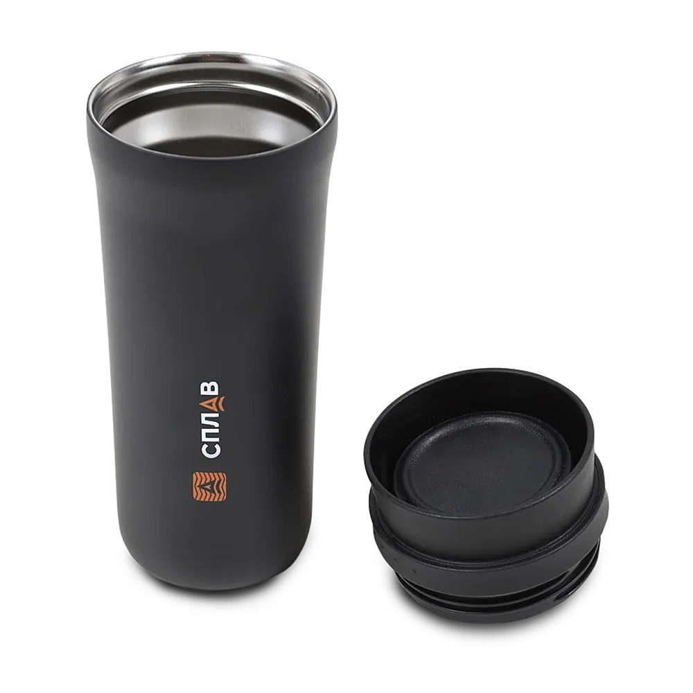 Термокружка Сплав SE-480 чёрного цвета — это удобная и практичная посуда для горячих напитков. Она имеет объём 480 мл и подходит для использования в автомобиле, офисе или дома. Изготовлена из нержавеющей стали и пластика, что обеспечивает долговечность и сохранение температуры напитка.
