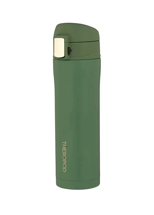 Термокружка THEROPOD TP-19-420-G объёмом 0,42 литра выполнена из высококачественной нержавеющей стали с матовым зелёным покрытием. Модель оснащена удобной крышкой-пробкой с поильником и двухпозиционным замком от случайного открывания, сохраняет температуру напитков до 12 часов. Корпус изготовлен из стали марки 201SS, внутренняя колба — из стали 304SS. Узкое отверстие поильника предотвращает расплёскивание, а силиконовые уплотнители обеспечивают герметичность. Компактные размеры (высота 235 мм, диаметр дна 65 мм) позволяют использовать кружку в автомобильных подстаканниках и велосипедных держателях. Вес 286 грамм делает её удобной для повседневного использования на работе, в путешествиях или во время занятий спортом
