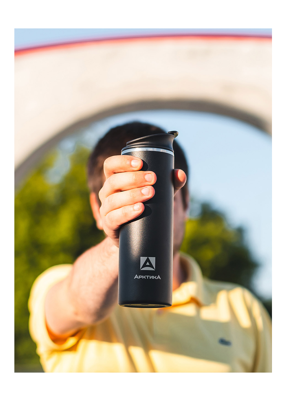 Термос-кружка вакуумный, бытовой, ТМ «Арктика», 0,48 л, артикул 710-480, чёрного цвета — это лёгкая модель питьевого термоса. Она идеально помещается в автомобильный подстаканник и занимает мало места в сумке. Кружка имеет износостойкое текстурное покрытие. Надёжная крышка на резьбе с силиконовым уплотнителем сохраняет необходимую температуру напитка. Плотная посадка колпачка обеспечивает герметичность.