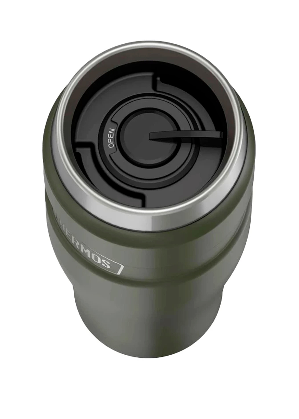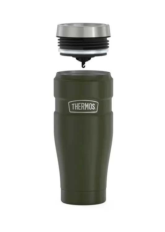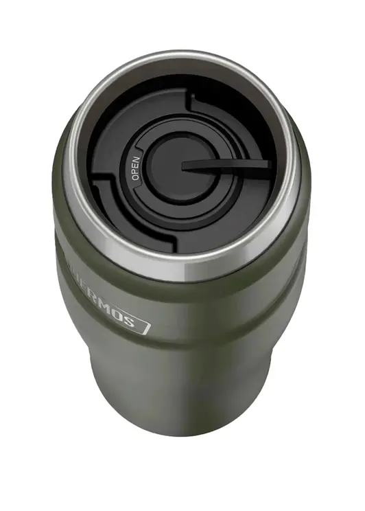 Надёжная термокружка в стильном зеленом исполнении с удобной системой открывания для ежедневного использования. широкое горлышко для удобного наполнения, механизм открывания на крышке, герметичная конструкция, зауженное основание для фиксации в подстаканнике, внутренний крючок для чайного пакетика, эргономичный дизайн.