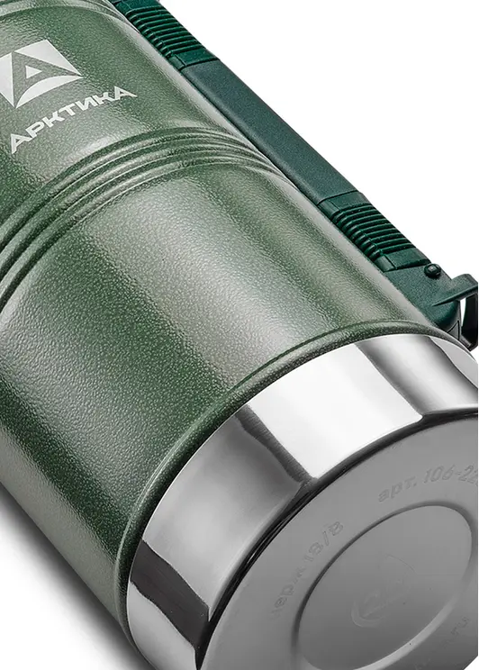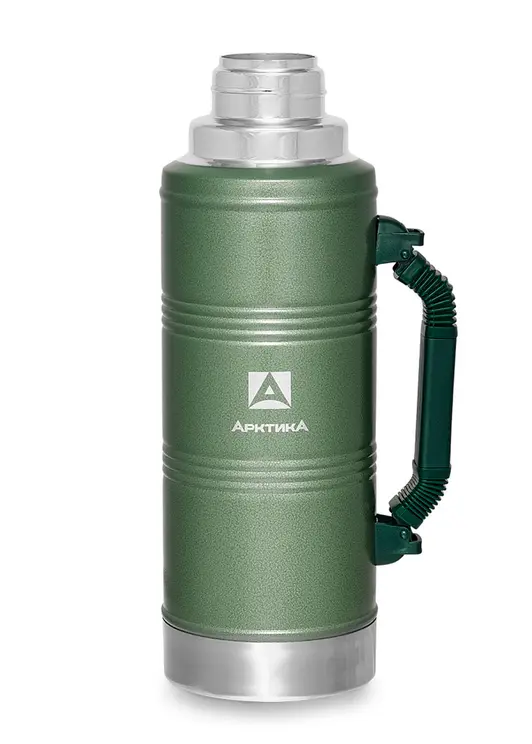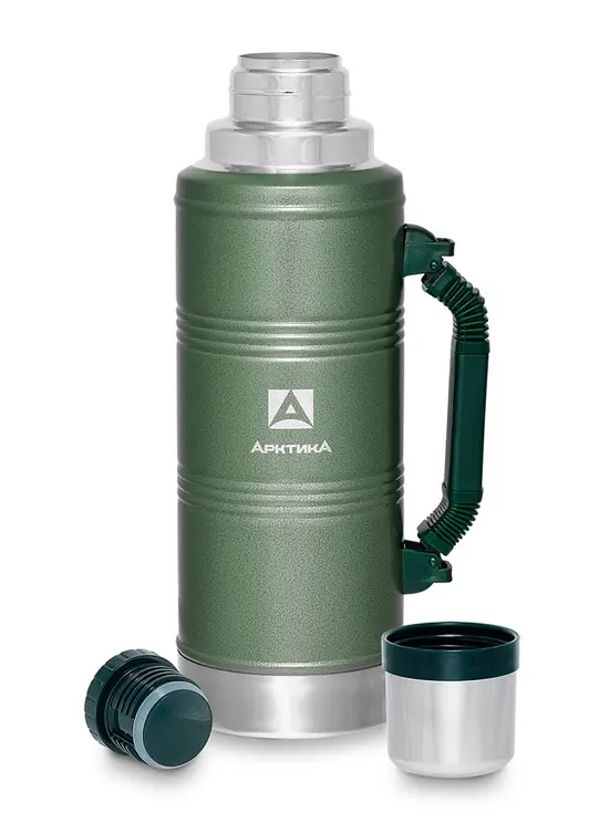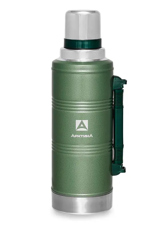 Бытовой зеленый вакуумный термос арт. 106-2200Р от компании "Арктика" объёмом 2200 мл предназначен для хранения горячих и прохладных напитков. Стандартный современный принцип работы изделия состоит в том, что между двумя стенками из пищевой стали находится вакуум, который плохо передаёт тепло. Большой объём позволит забыть от недостатки горячего чая в холодную погоду. Зелёный цвет хорошо сочетается с зеленью на природе. Термос полностью изготовлен из нержавеющей ударопрочной пищевой стали марки 18/8. Конструкция имеет глухую пробку со специальным термоизолятором и каналами для наливания в полуоткрытом положении. Дополнительная чашка и большой объём дают возможность поделиться напитком с ближним. Имеется удобная ручка для комфортной переноски. Данный товар будет хорошей покупкой для семьи.