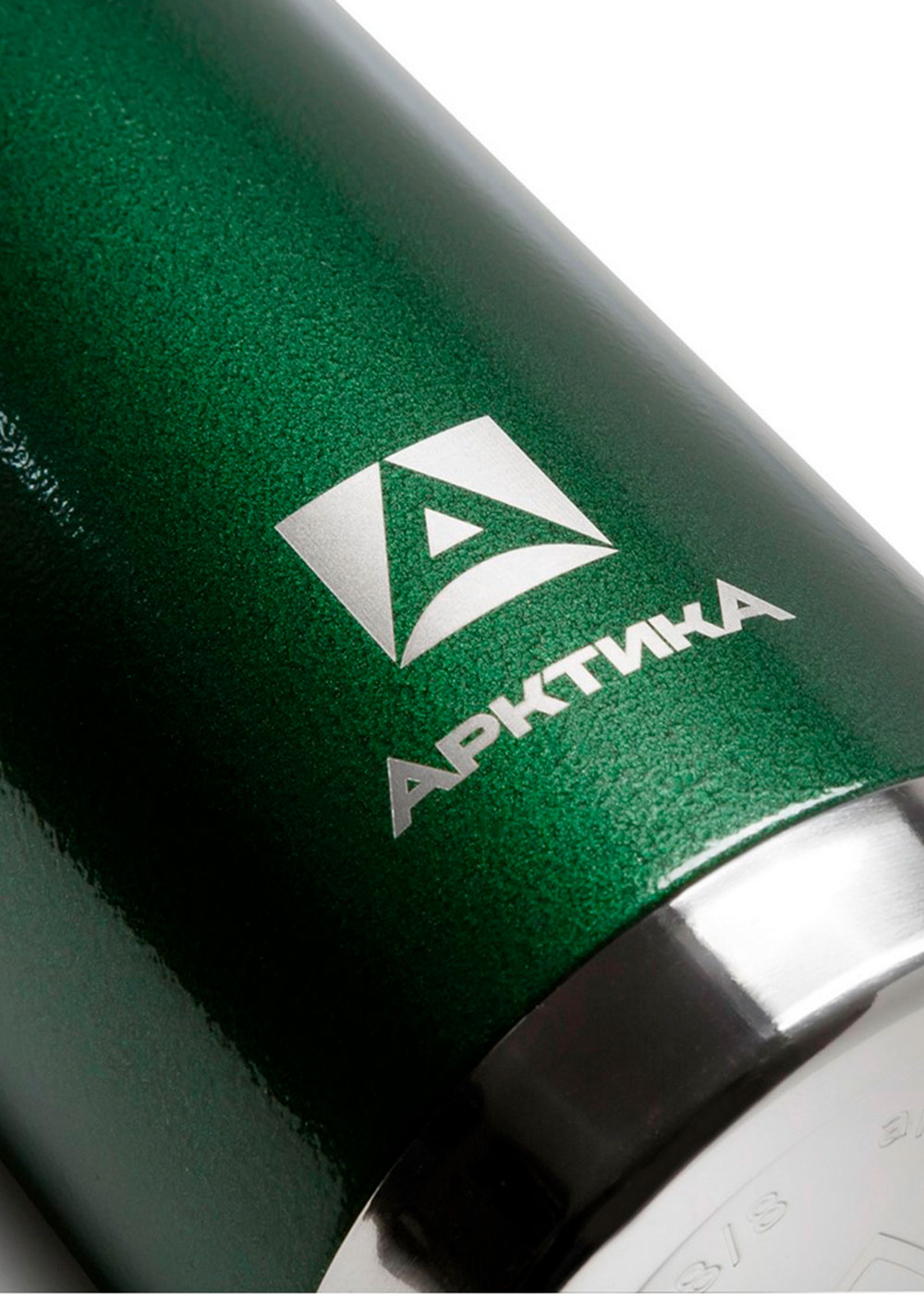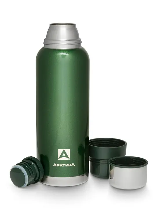 Термос «Арктика» объёмом 1,2 литра с узким горлом выполнен в американском дизайне и имеет зелёный цвет. Он успешно прошёл испытания в арктической экспедиции и имеет ударопрочное покрытие из молотковой эмали, которое защищает его от сколов и царапин.Характеристики: