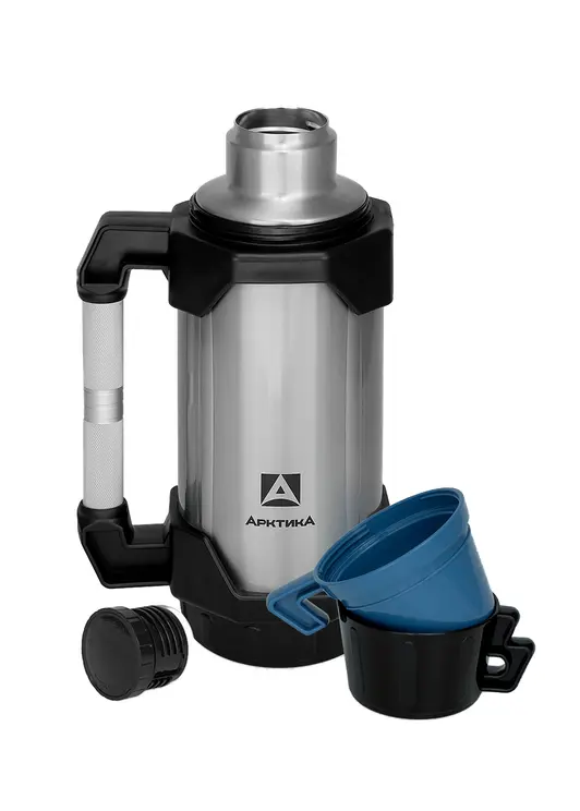 Термос «Арктика-Учур» объёмом 1800 мл, артикул 110-1800, синего цвета идеально подходит для любителей рыбалки и охоты. Благодаря своей высокой эффективности в сохранении тепла и холода, этот термос станет надежным спутником в любых условиях. Крышка плотно прилегает к горлышку, обеспечивая 100% герметичность. Оснащен нескладной ручкой из облегченного алюминиевого сплава, удобной для использования даже в объемных варежках. Подходит для напитков и любых других жидкостей. Корпус из нержавеющей стали и пластика устойчив к повреждениям и долговечен.