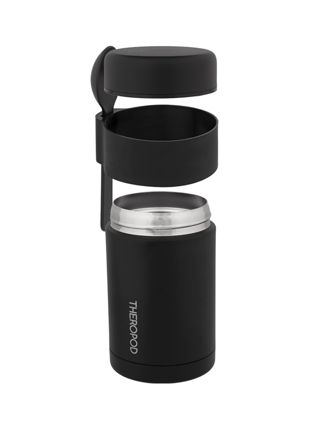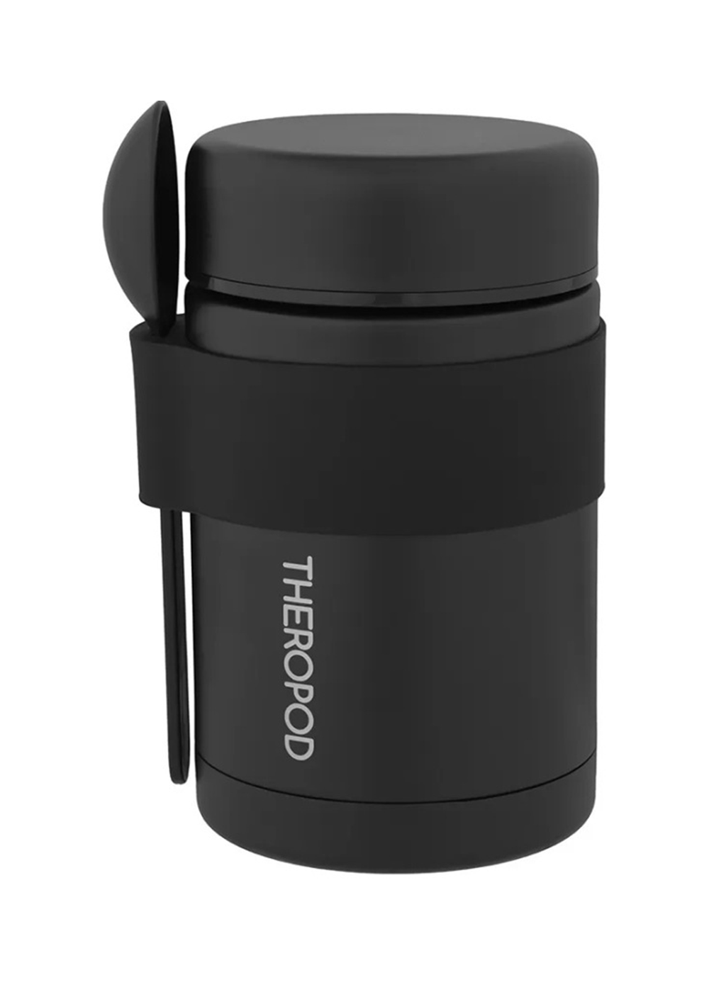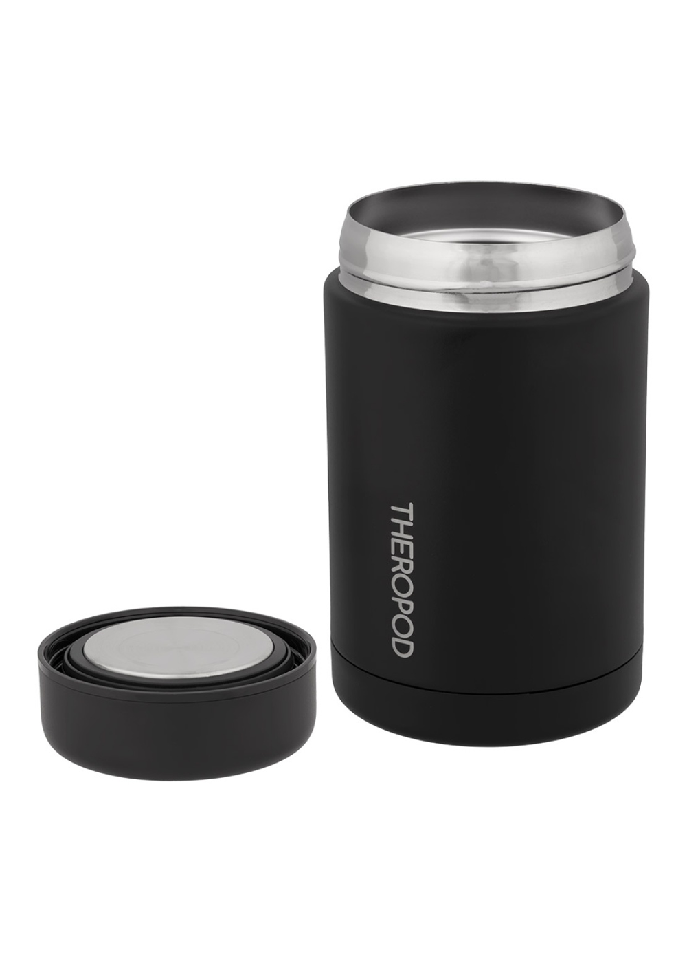 Термос THEROPOD TP-20-520-B объёмом 0,52 литра выполнен из высококачественной нержавеющей стали с матовым чёрным покрытием. Модель оснащена винтовой крышкой-пробкой с уплотнителем из пищевого силикона и комплектуется ложкой на наружном держателе. Корпус изготовлен из стали марки 201SS, а внутренняя колба — из стали 304SS, не взаимодействующей с пищей. Вакуумная изоляция сохраняет температуру горячих блюд до 10 часов. Широкое горлышко диаметром 75 мм обеспечивает удобство наполнения и мытья. Компактные размеры (высота 152 мм, диаметр дна 90 мм) и небольшой вес 380 грамм делают термос удобным для ежедневного использования на работе, учёбе или в путешествиях. Подходит как для горячих, так и для холодных блюд