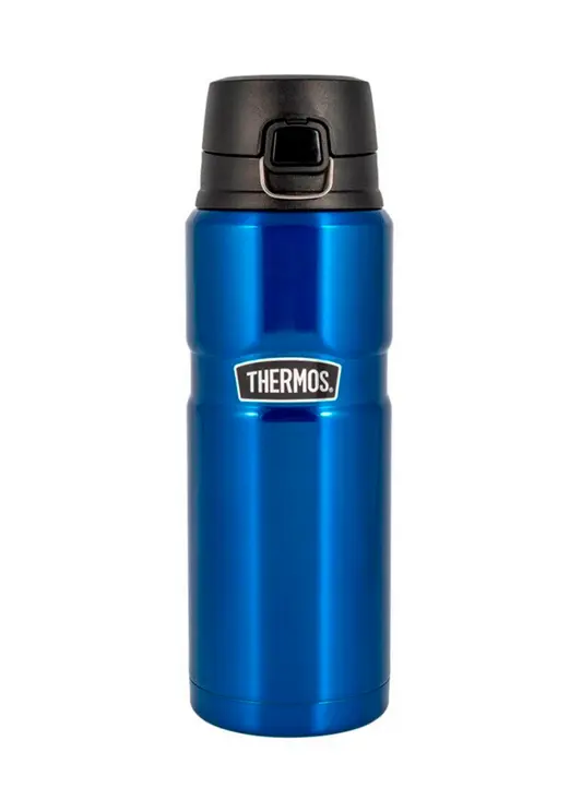 Термос для напитков Thermos SK4000 Stainless Steel объёмом 0,71 л из нержавеющей стали синего цвета. Сохраняет тепло до 14 часов, холод - до 28 часов.