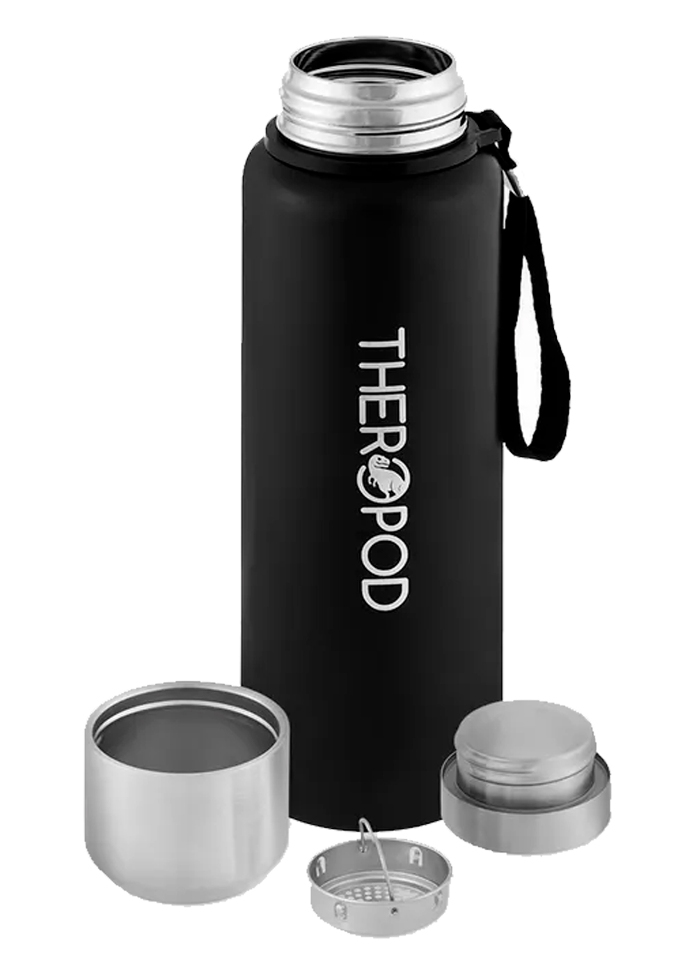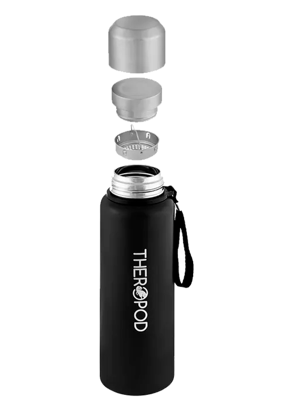 Термос для напитков THEROPOD TP-10 0.75L — это классический термос из высококачественной нержавеющей стали, предназначенный для сохранения температуры горячих или холодных напитков. Он имеет объём 0,75 литра и эффективно сохраняет температуру до 24 часов. Термос оснащён вакуумной колбой и узким горлышком, а также прочной пробкой и крышкой-чашкой из нержавеющей стали. В горлышке предусмотрено съёмное металлическое ситечко для предотвращения попадания чаинок в чашку при наливании. Для удобства использования термос оснащён прочной нейлоновой петлёй для переноски и резиновой накладкой на дне для устойчивости и предотвращения скольжения.