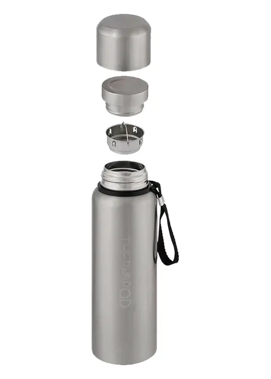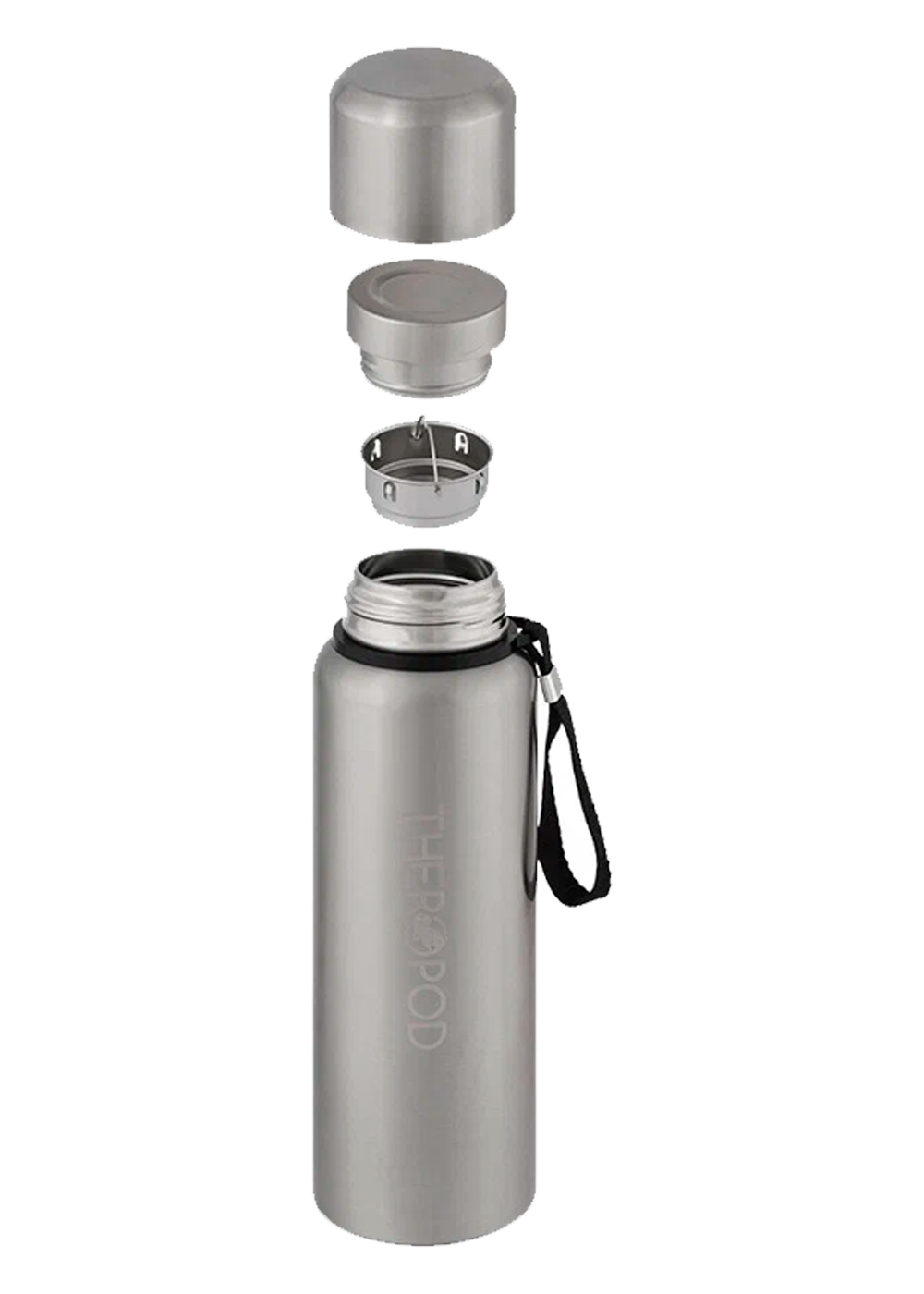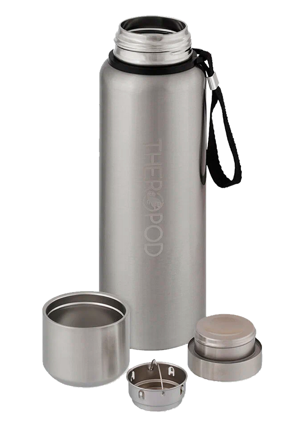 Термос для напитков THEROPOD TP-10 объёмом 1 литр изготовлен из высококачественной нержавеющей стали. Он эффективно сохраняет температуру напитка до 24 часов. Термос доступен в классическом стальном цвете.