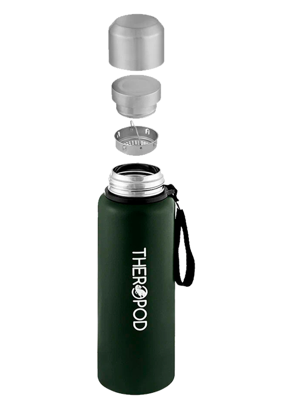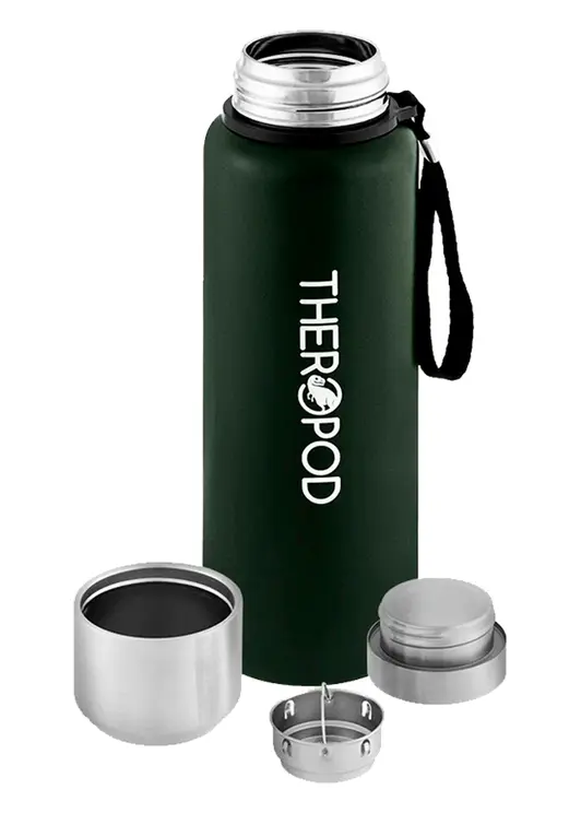 Термос для напитков THEROPOD TP-10 объёмом 1 литр изготовлен из высококачественной нержавеющей стали. Он эффективно сохраняет температуру напитка до 24 часов. Термос зелёного цвета имеет массу 520 грамм и размеры: высота — 305 мм, диаметр горлышка — 44 мм, диаметр дна — 88 мм.