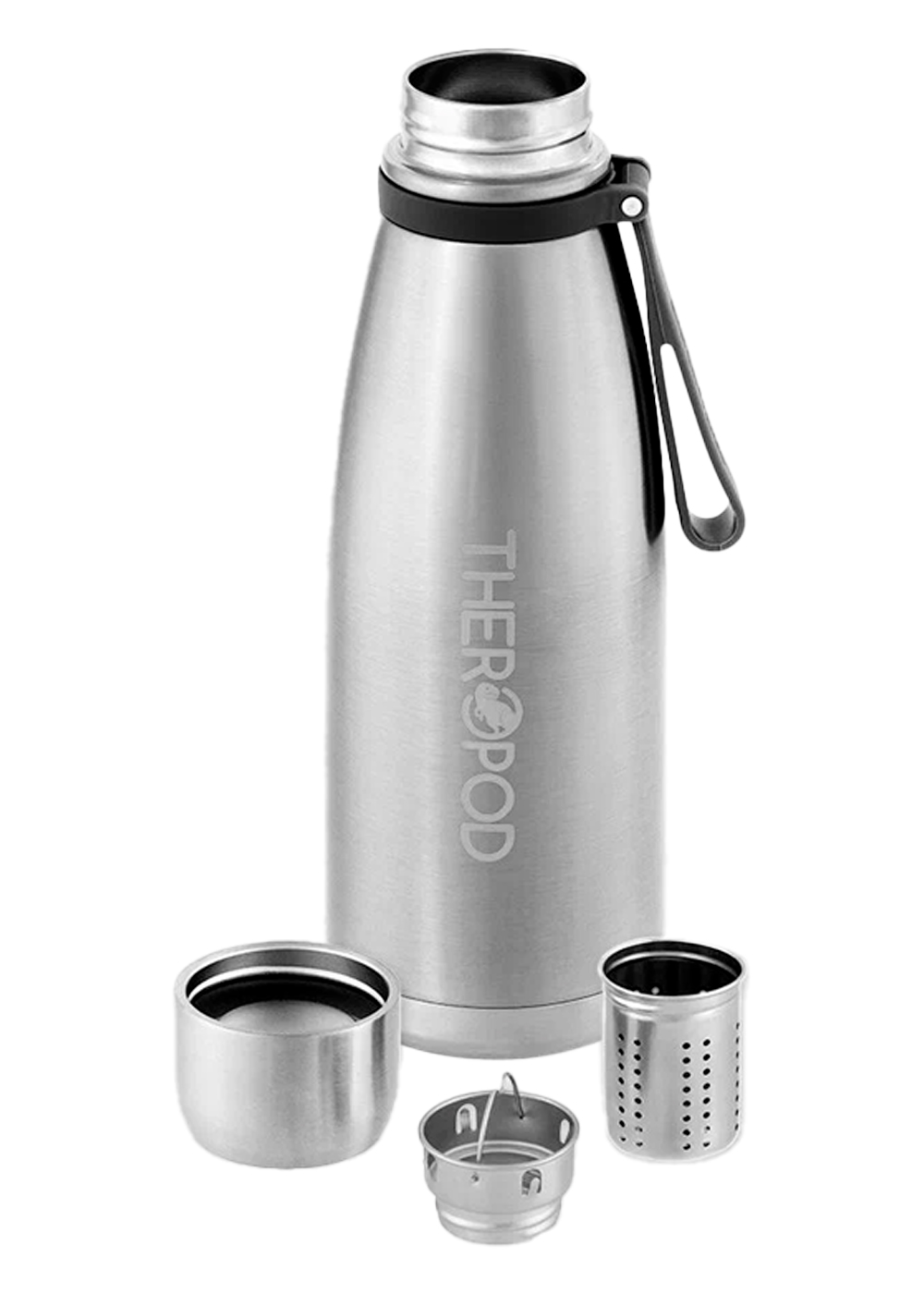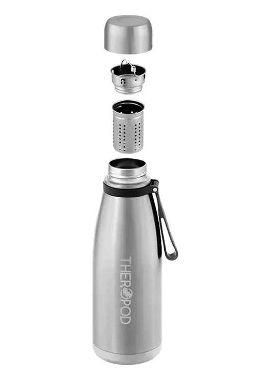 Термос для напитков THEROPOD TP-14 объёмом 0,85 литра изготовлен из высококачественной нержавеющей стали. Он эффективно сохраняет температуру напитка до 12 часов. Весит термос 490 грамм, имеет размеры: высота — 270 мм, диаметр горлышка — 44 мм, диаметр дна — 88 мм.