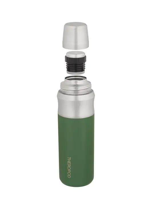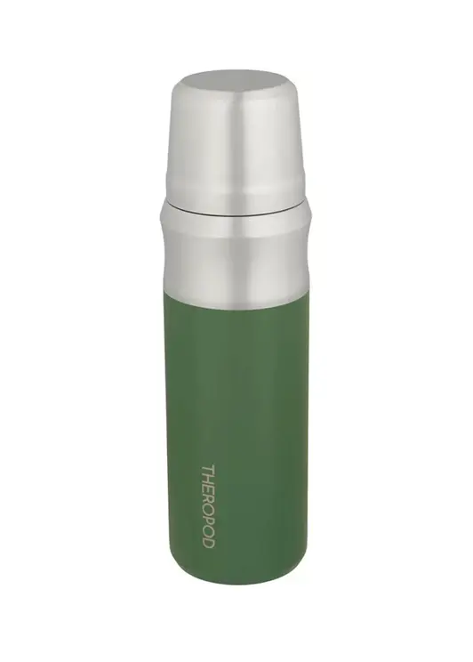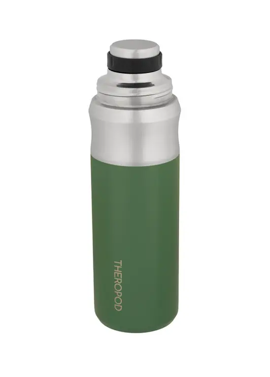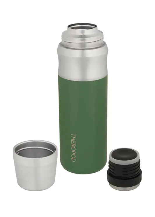 Термос THEROPOD TP-23-1000-G объёмом 1 литр выполнен из высококачественной нержавеющей стали с комбинированным зелёно-серебристым покрытием. Модель оснащена винтовой пробкой со специальными пазами для наливания без полного выкручивания, что помогает сохранять температуру напитков до 24 часов. Корпус, колба и крышка-чашка изготовлены из пищевой нержавеющей стали 304SS, а пробка содержит элементы из стали 201SS. Силиконовые уплотнители обеспечивают герметичность и легко снимаются для очистки. Термос имеет удобную выемку в верхней части для надёжного хвата, крышку-чашку и минимальное количество пластиковых деталей, что повышает его прочность и надёжность. Внешнее матовое зелёное покрытие устойчиво к повреждениям. Компактные размеры (высота 300 мм, диаметр дна 86 мм, горлышка 48 мм) при весе 523 грамма делают его удобным для использования на работе, в путешествиях и длительных прогулках.