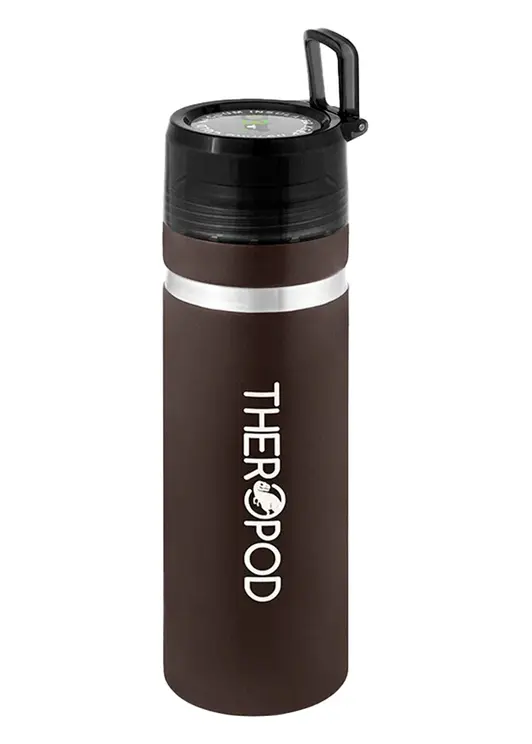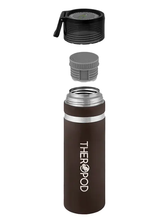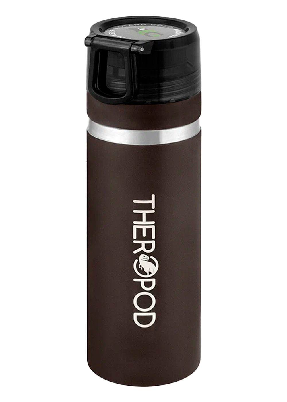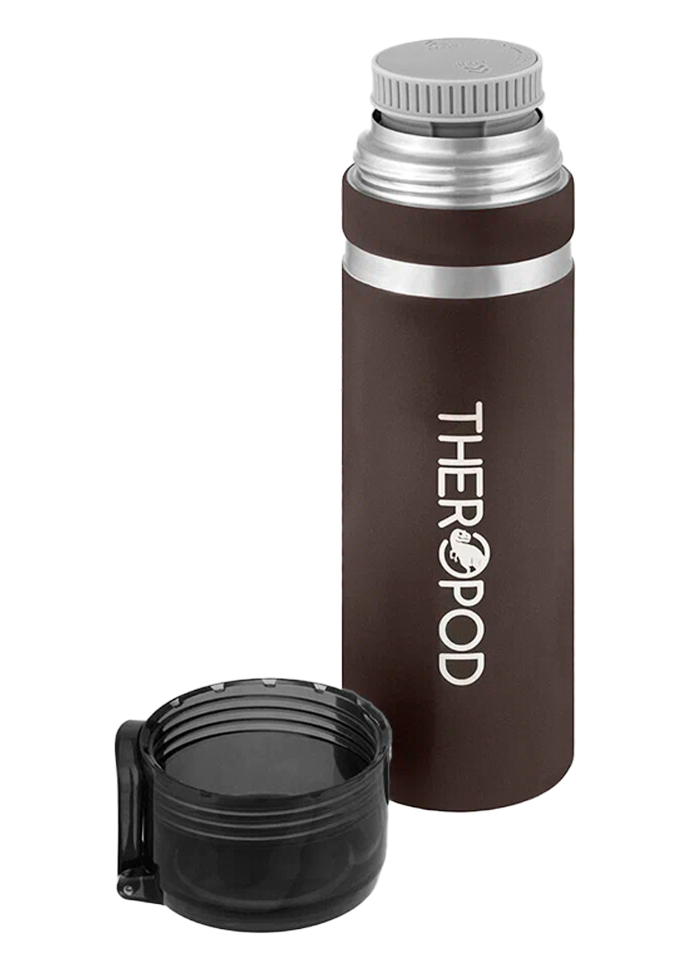 Термос для напитков THEROPOD TP-43 объёмом 0,7 литра выполнен из высококачественной нержавеющей стали и имеет серый цвет. Он эффективно сохраняет температуру напитка до 12 часов и весит 350 грамм. В комплект входит удобная крышка-чашка и винтовая пробка с силиконовым уплотнителем.