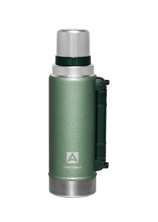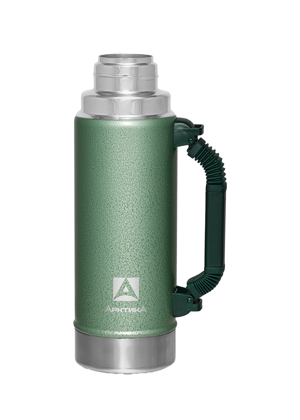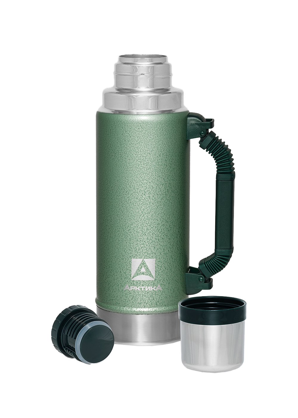 Вакуумный термос «Арктика» объёмом 1250 мл (арт. 106-1250P) в зелёном исполнении — надёжная модель бытового назначения с корпусом и колбой из нержавеющей стали. Оснащён узким горлом диаметром 5 см, складной эргономичной ручкой для удобной переноски и крышкой-стаканчиком. Сохраняет температуру напитков до 40 часов в горячем состоянии и до 60 часов в холодном, что обеспечивается высококачественной вакуумной изоляцией. Прочное антивандальное покрытие из молотковой эмали защищает поверхность от повреждений. Компактные размеры и герметичная конструкция делают термос идеальным для дома, поездок, путешествий и активного отдыха.