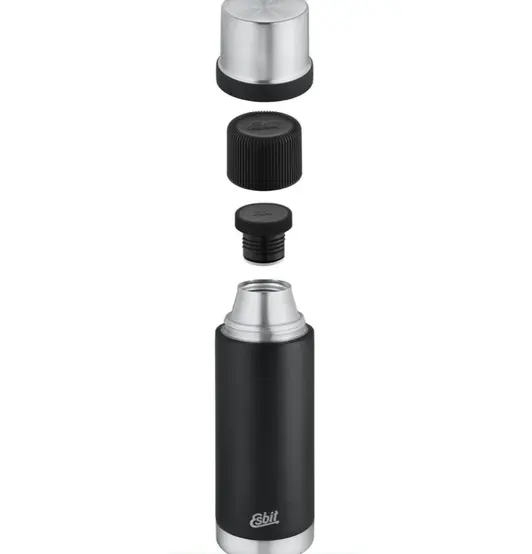 Esbit SCULPTOR нержавеющая сталь термобутылка, 1 л, черная. На экскурсии или в городе, вдали от цивилизации: всегда приятно иметь термобутылку из дизайнерской линейки SCULPTOR под рукой. В конце концов, она сохраняет напитки горячими или холодными особенно долго и на 100% герметична. Эта термобутылка не только красиво оформлена, но и прочна. Особенно практична: крышка также служит чашкой и вмещает около 285 мл. В комплект также входит вторая чашка емкостью около 154 мл. Благодаря высококачественному порошковому покрытию термобутылка прочно и надежно лежит в руке. Она изготовлена из нержавеющей стали 18/8 с двойными стенками и имеет практичную крышку с поворотом и выливанием. Емкость составляет около 1 л.