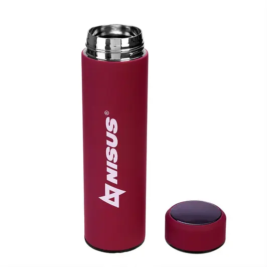 Термос Nisus N.TM-049-R с термодатчиком красного цвета имеет объём 450 мл. Он оснащён двойными стенками с вакуумной изоляцией, что позволяет сохранять температуру горячих и холодных напитков долгое время. В крышке термоса есть термодатчик со светящимся экраном, который показывает текущую температуру напитка при нажатии. Термос изготовлен из высококачественной нержавеющей стали с защитным покрытием Soft-touch. Термос Nisus с термодатчиком подойдёт как для туристов, охотников и рыболовов, так и для повседневного использования в городской обстановке.