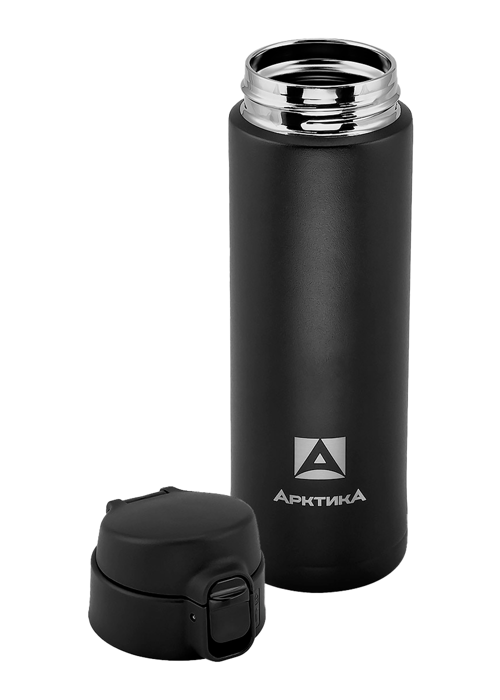 Термос питьевой вакуумный «Арктика» объёмом 420 мл, артикул 701-420, текстурный чёрный — это бытовой термос, предназначенный для сохранения тепла и холода напитков. Он изготовлен из долговечной нержавеющей стали и безопасного пищевого пластика. Термос оснащён узкой горловиной, откидной крышкой с фиксирующим замком и гипоаллергенной силиконовой прокладкой для обеспечения герметичности. Он сохраняет тепло горячих напитков до 6 часов и холод холодных напитков до 26 часов. Термос представлен в трёх универсальных расцветках.