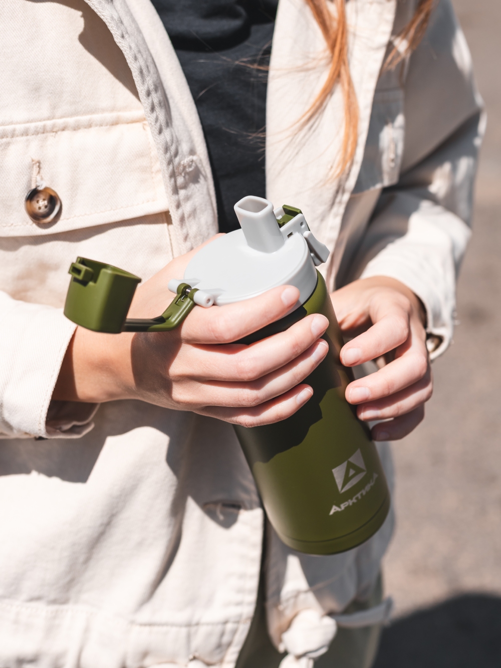 Специальный колпачок защищает носик для питья от пыли. Выполнен из долговечной пищевой нержавеющей стали.