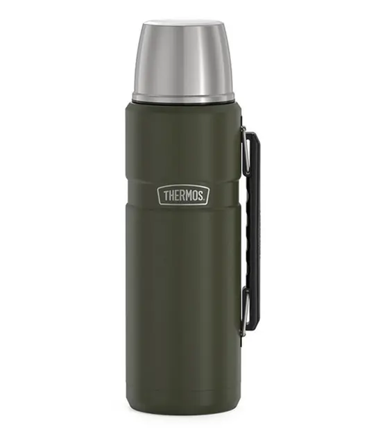 Термос для напитков THERMOS SK2010 AG — это классический термос серии KING, который сохраняет напитки горячими или холодными более суток. Изготовлен из пищевой нержавеющей стали, имеет объём 1,2 литра и матовое покрытие цвета хаки. Оснащён удобной двуслойной крышкой-чашкой, винтовой пробкой и складной ручкой для переноски.