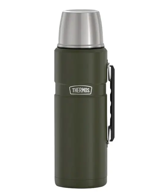 Термос для напитков THERMOS SK2020 AG — это классический термос серии KING, который сохраняет напитки горячими или холодными не менее 36 часов. Он изготовлен из пищевой термостойкой нержавеющей стали, имеет объём 2 литра и матовое покрытие цвета хаки. Термос оснащён удобной двуслойной крышкой-чашкой, винтовой пробкой и складной ручкой для переноски.