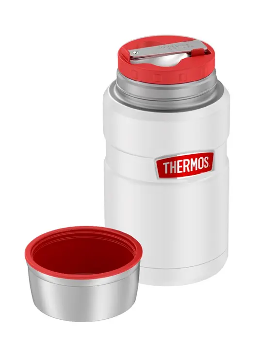 Элегантный термос для еды с высокими теплоизоляционными характеристиками и стильным дизайном. Матовое белое покрытие с красными элементами, складная ложка из нержавеющей стали, крышка-чашка объемом 150 мл, винтовая пробка с отделением для ложки, технология глубокой вакуумной термоизоляции, бесшовная сварка, широкое горлышко для удобного наполнения, гладкие внутренние стенки для легкого мытья.