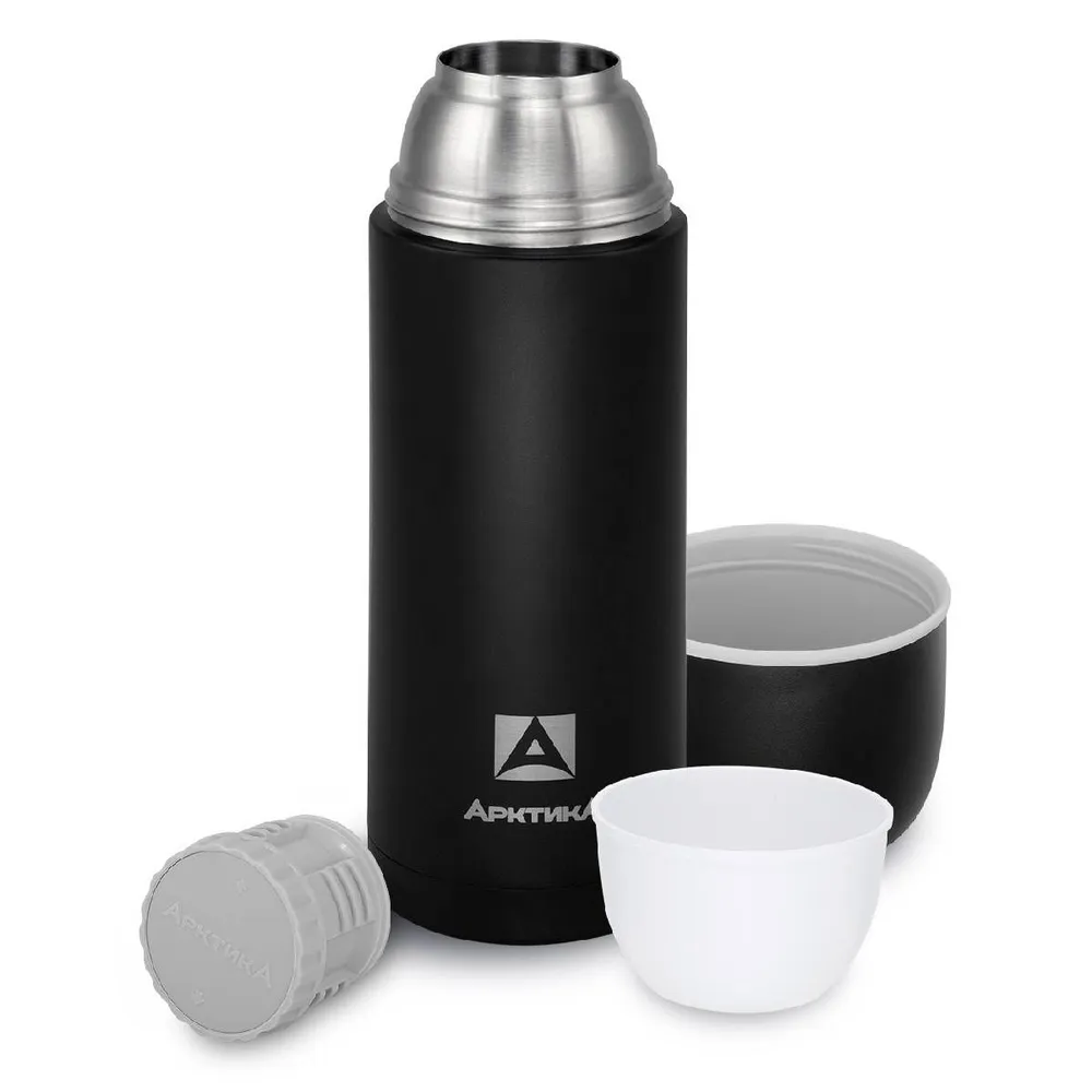 Термос «Арктика» объёмом 1000 мл, чёрного цвета — это стильный и функциональный аксессуар для хранения горячих и холодных напитков. Он изготовлен из высококачественной нержавеющей стали, которая не влияет на вкус содержимого. Термос сохраняет температуру напитка до 24 часов, а холод — до 38 часов. Удобная крышка-чашка с двойными стенками и встроенная питьевая система позволяют наслаждаться напитками без использования дополнительной посуды.