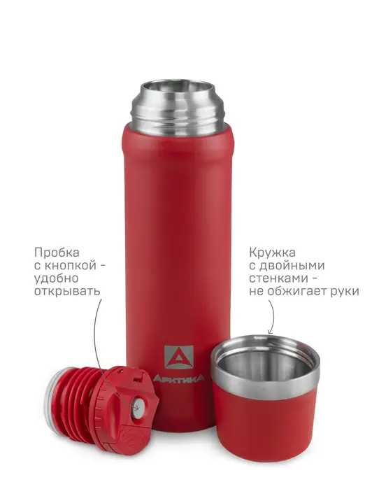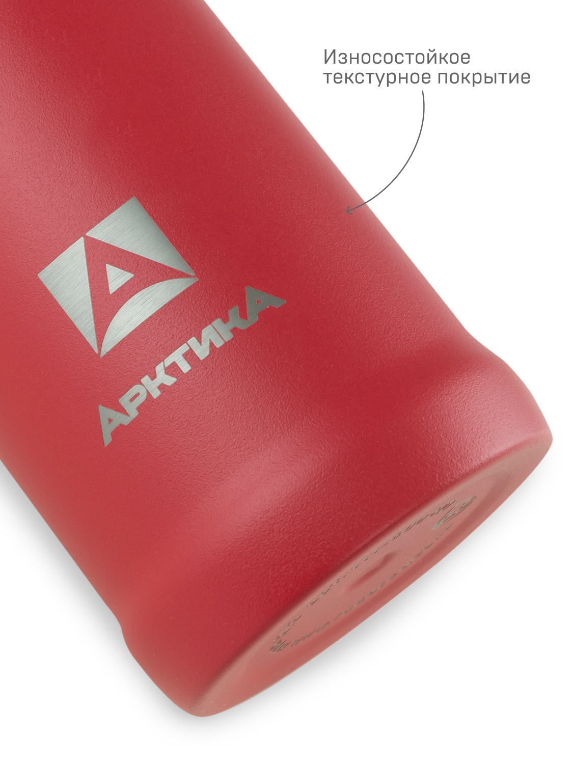 Термос «Арктика» объёмом 600 мл красного цвета — это универсальный городской термос, который сочетает в себе надёжность, продуманность деталей и современный дизайн. Он сохраняет тепло до 24 часов и холод до 38 часов. Термос изготовлен из качественной нержавеющей стали и пластика BPA free, безопасного для здоровья. Универсальный городской термос, в котором сочетаются надежность, продуманность деталей и современный дизайн. Приятное на ощупь износостойкое текстурное покрытие доступно в трех вариантах расцветки. Открывайте термос одним движением на 180°. Для горячих напитков предусмотрена полностью стальная крышка-чашка с двойными стенками, не обжигающая руки. Чтобы освежиться, используйте встроенную питьевую систему и пейте без использования чашки.