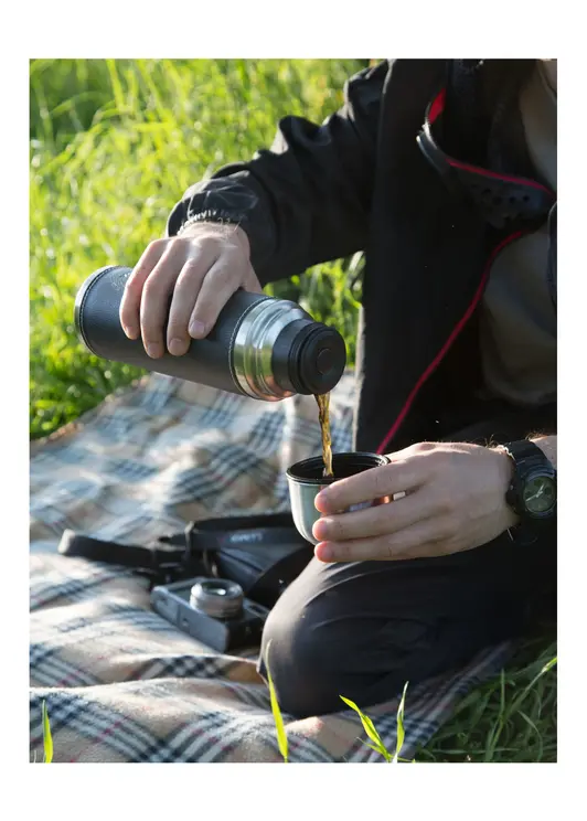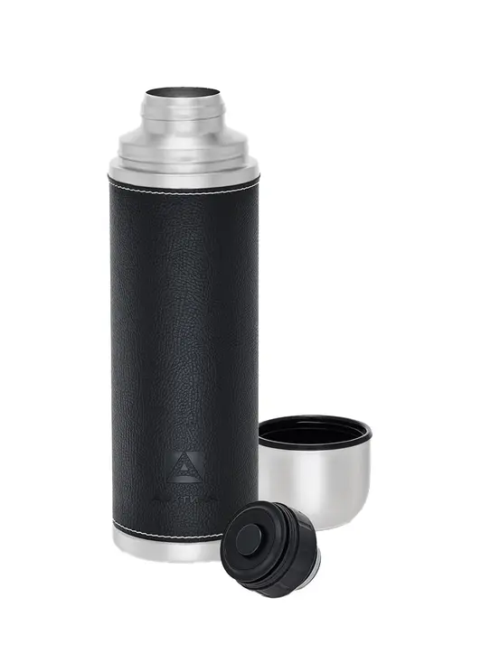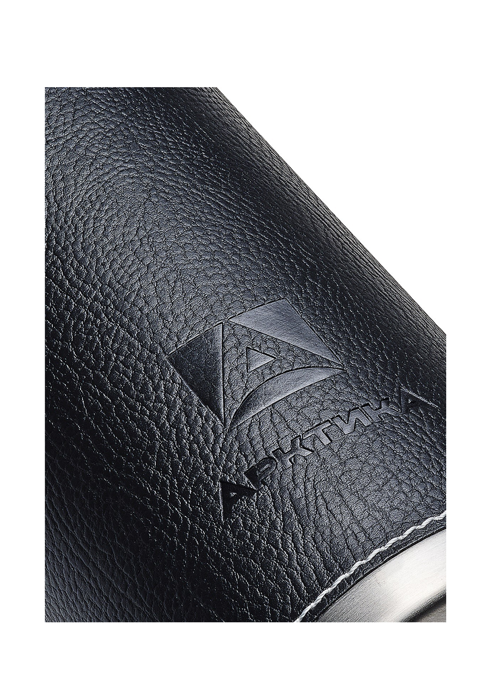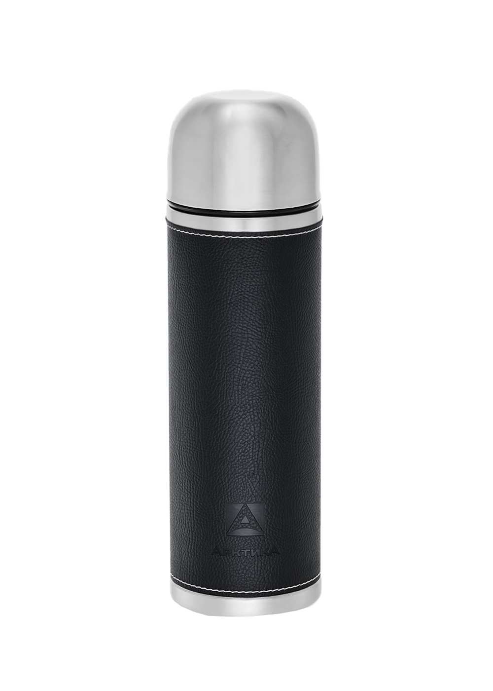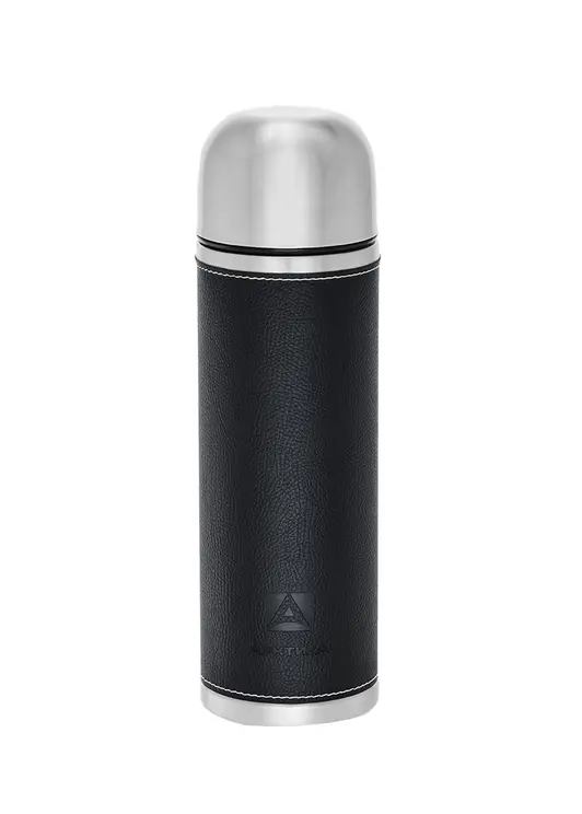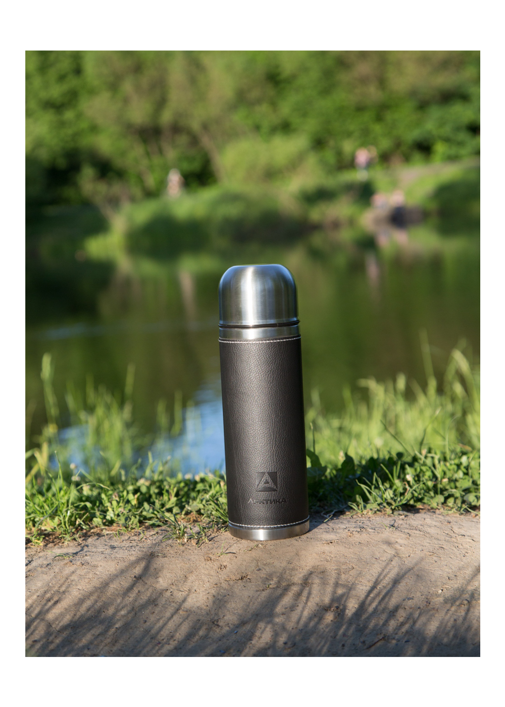 Термос «Арктика» в кожаной оплетке объёмом 1000 мл (арт. 108-1000) в черном цвете — стильная и практичная модель с покрытием, имитирующим кожу канадского бизона. Корпус выполнен из нержавеющей стали с двойной вакуумной стенкой, сохраняющей температуру напитков до 28 часов. Оплетка защищает от отпечатков пальцев и служит дополнительным термослоем, при этом легко снимается для очистки. Модель оснащена удобной пробкой с кнопкой для комфортного наливания и обеспечивает полную герметичность. Компактные размеры и эргономичный дизайн делают термос удобным как для походов, так и для повседневного использования.