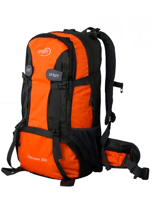 Рюкзак туристический «IFRIT Extractor» 50 л оранжевого цвета — идеальный выбор для профессионалов пеших походов. Он обладает огромным объёмом и вмещает всё необходимое для комфортного путешествия: одежду, еду, палатку, спальный мешок и другие предметы. Рюкзак оснащён регулируемыми лямками с мягкими подкладками и поясом для распределения нагрузки на спину, что облегчает ходьбу. Материал рюкзака — износостойкий полиэстер с водоотталкивающей пропиткой, благодаря которой ваши вещи останутся сухими. Внутри рюкзака есть карман для ноутбука, фиксируемый лямкой на липучке, чтобы предотвратить выпадение техники. В нижней части рюкзак усилен более прочной и водонепроницаемой тканью, устойчивой к механическим воздействиям. По бокам расположены стяжки для регулирования объёма рюкзака, а также карманы на резинках для бутылок с водой.