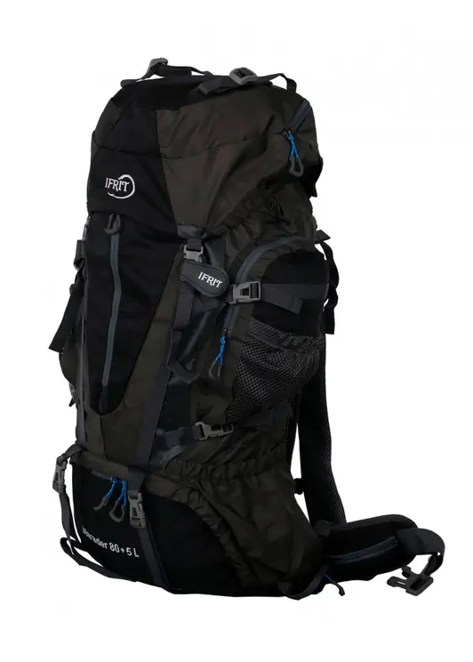 Рюкзак туристический каркасный IFRIT Marader чёрного цвета — это многоцелевой рюкзак, предназначенный для туристических походов. Объём рюкзака составляет 80 литров, а дополнительно предусмотрено 5 литров для размещения снаряжения. Рюкзак изготовлен из прочного полиэстера и имеет металлический каркас, который обеспечивает жёсткую конструкцию и предотвращает деформацию рюкзака. Анатомические плечевые лямки и поясной ремень с двумя карманами на молнии обеспечивают комфорт при ношении. В основном отделении есть карман для документов и мобильного телефона, а также дополнительный карман в клапане для хранения вещей первой необходимости. По бокам расположены два кармана на молнии для бутылок с водой или других предметов. Этот рюкзак идеально подходит для длительных туристических походов и активного отдыха на природе.