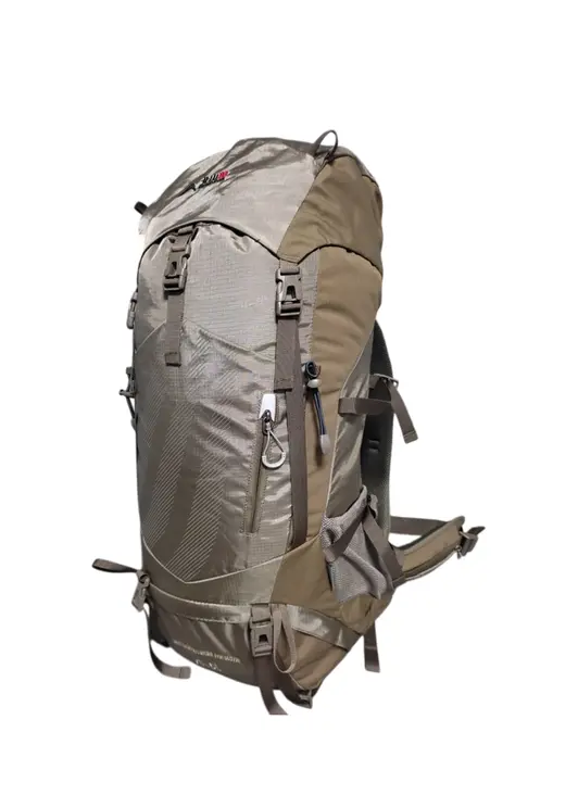 Туристический рюкзак Bisinna объёмом 70+5 литров в цвете хаки предназначен для длительных походов и путешествий. Изготовлен из прочного водоотталкивающего полиэстера, оснащён съёмным металлическим каркасом для оптимального распределения нагрузки. Модель включает вентилируемую спинку, регулируемые мягкие плечевые ремни и набедренный пояс с карманами, карман для гидрационной системы, множество функциональных отделений и карманов на молниях, включая боковые. В комплект входит дождевик, предусмотрены крепления для треккинговых палок. Габариты рюкзака 73×38×22 см, вес 1,58 кг, что делает его удобным для длительных переходов.