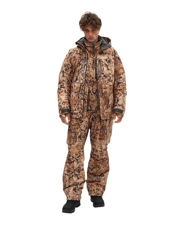 Костюм UCHUR BULCHUT 3 в 1 — многослойная система для экстремальных условий с температурой до -35°C. В комплект входят внешняя куртка, съёмная утеплённая подстёжка и полукомбинезон. Мембрана ARDAH SHIELD (водоотталкивание 10 000 мм, паропроницаемость 10 000 г/м) защищает от ветра и влаги, выводит пар и предотвращает перегрев. Утеплитель распределён зонами (250–300 gsm), а вставки из Oxford на локтях, пояснице, куртке и штанах повышают защиту в местах нагрузки. Регулируемые манжеты и настройки обеспечивают плотную посадку.
