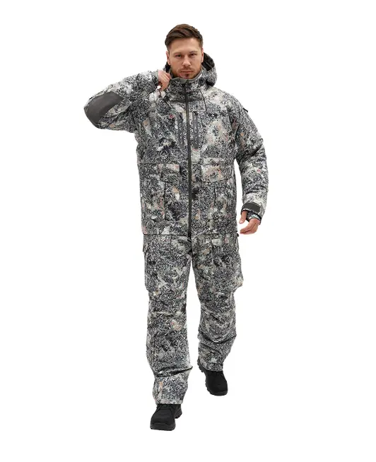 Костюм UCHUR BULCHUT 3 в 1 — многослойная система для экстремальных условий с температурой до -35°C. В комплект входят внешняя куртка, съёмная утеплённая подстёжка и полукомбинезон. Мембрана ARDAH SHIELD (водоотталкивание 10 000 мм, паропроницаемость 10 000 г/м) защищает от ветра и влаги, выводит пар и предотвращает перегрев. Утеплитель распределён зонами (250–300 gsm), а вставки из Oxford на локтях, пояснице, куртке и штанах повышают защиту в местах нагрузки. Регулируемые манжеты и настройки обеспечивают плотную посадку.