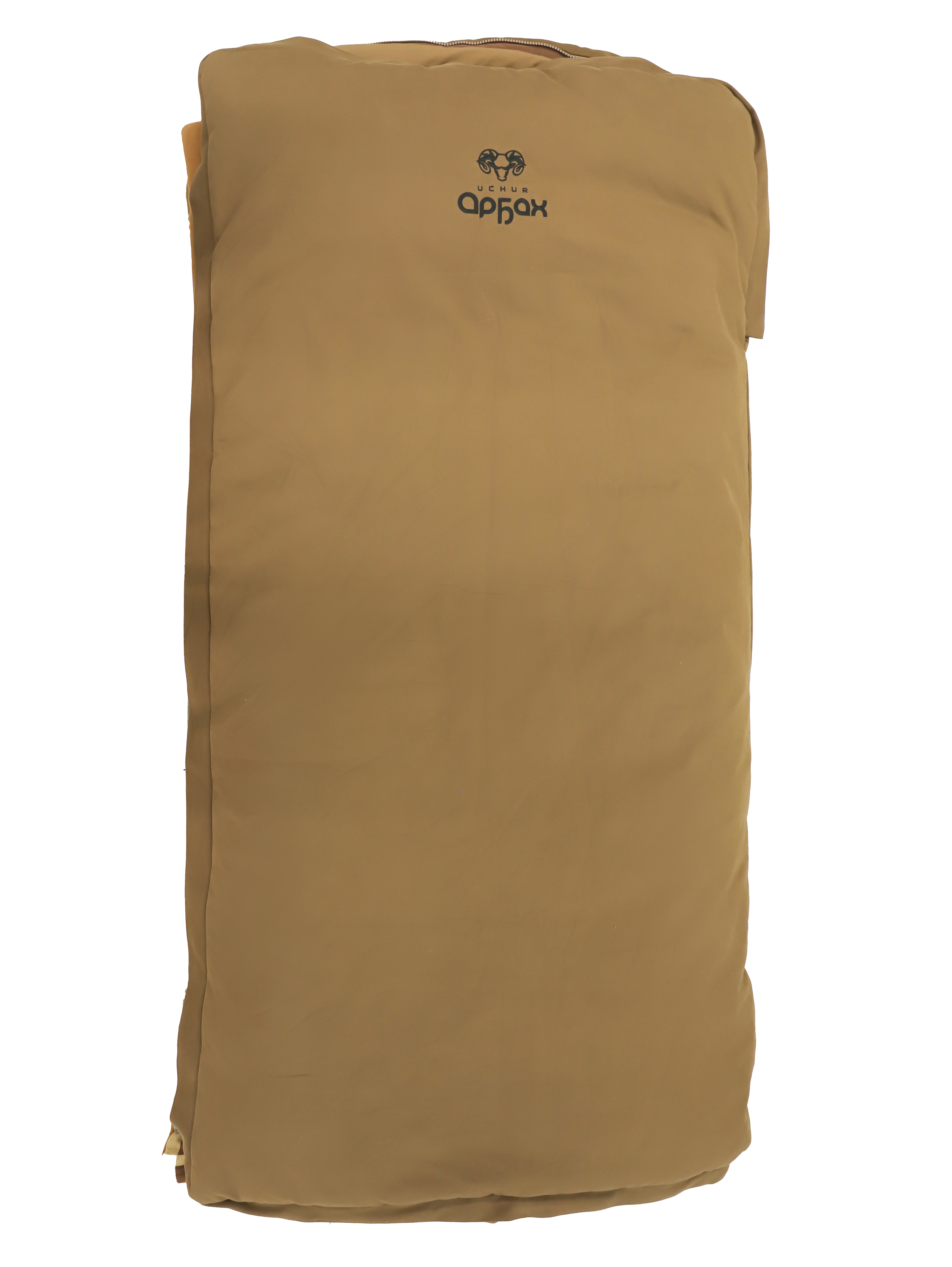 Спальный мешок UCHUR “Ар5ах” — Дорожная сумка из холста на молнии, 3-замковая 10# смоляная молния, молния буфер и ветрозащита, внешняя защитная молния, петля для подвешивания, подушка, полностью закрытая конструкция, 5-сантиметровые ремни и железные кольца, сьемный слой фланелового флисового коврика. Обычная коричнеая коробка: 62х45х45 см/1 шт.